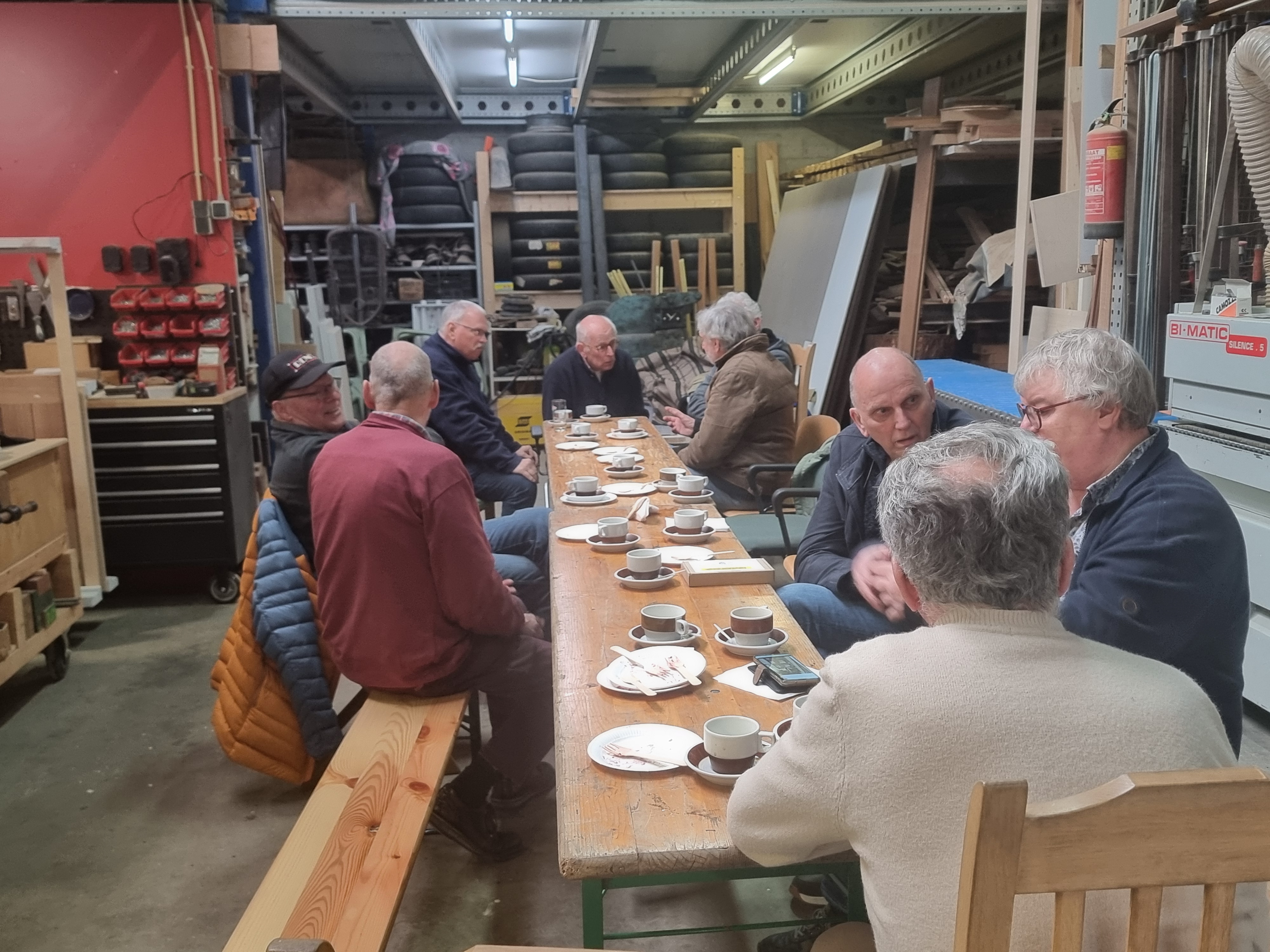 Een zeer gezellige Café Parler in de mancave/werkplaats van Roger en Paul Kicken.