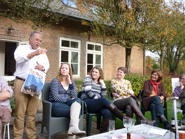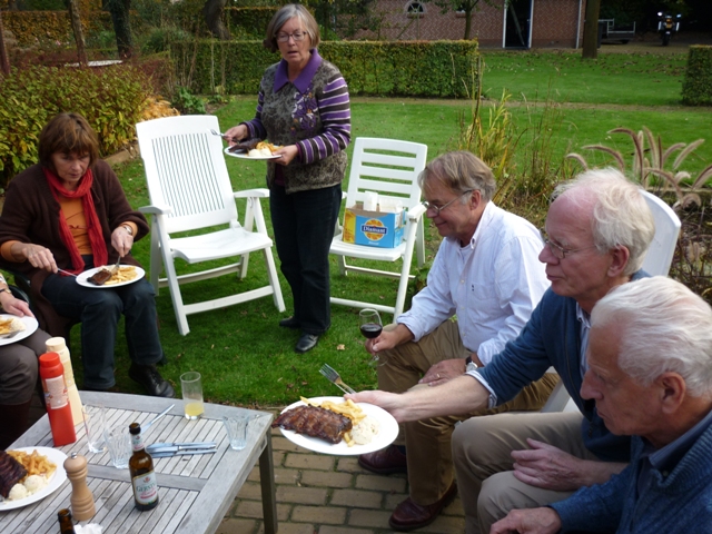 We werden gastvrij ontvangen in hun mooie verbouwde boerderij. De ochtend werd nuttig besteed met het doornemen van de activiteiten, financien en natuurlijk een blik op het komend jaar. De middag stond in het teken van De Winterbeurt waar Henk en Huib ons aan de hand van hun Tractions tips gaven hoe onze auto netjes klaar te maken voor de kou. Nou ja, kou daar was nog weinig van te merken met zo'n 18 graden celsius konden we lekker buiten zitten, voor de afsluiter - smullen van de spare ribs die Paul gebakken had met een berg frieten erbij.