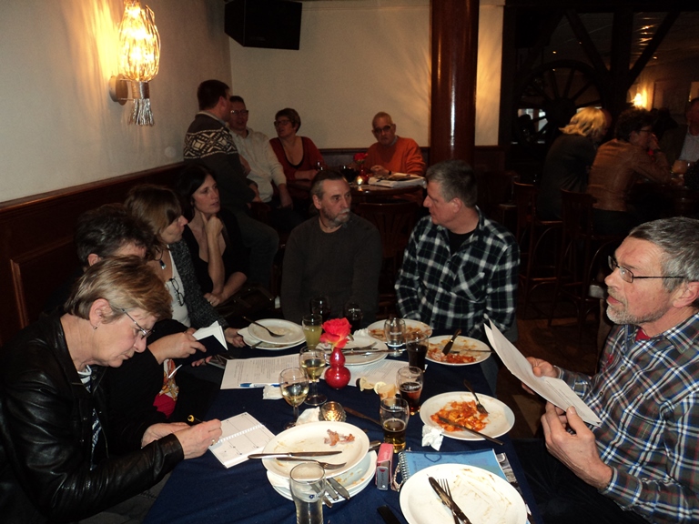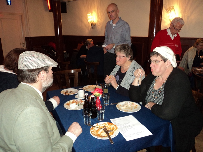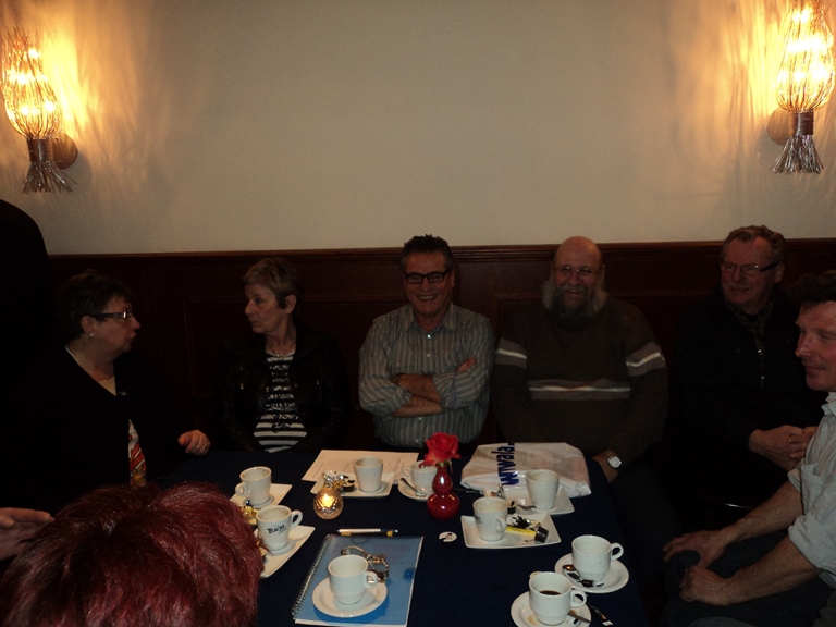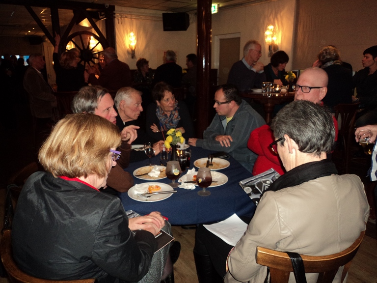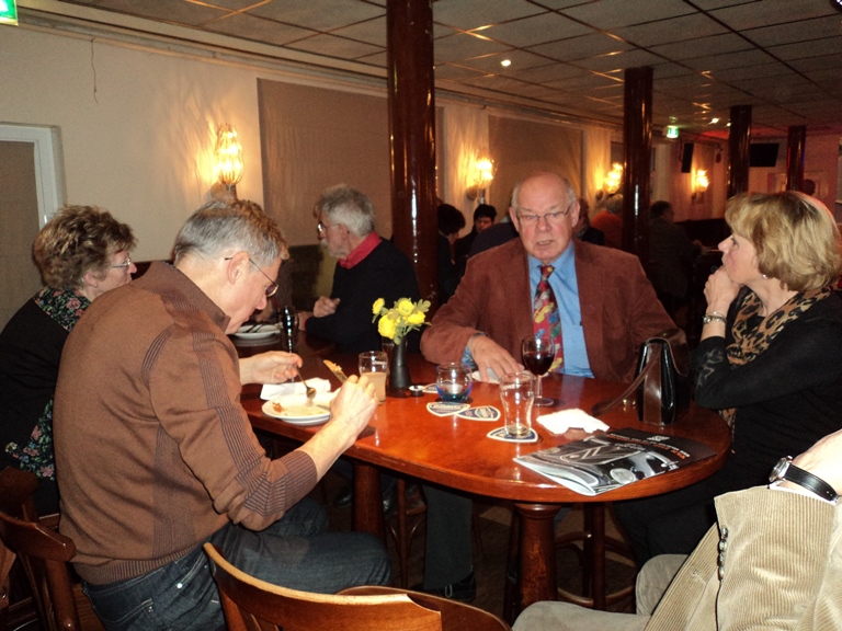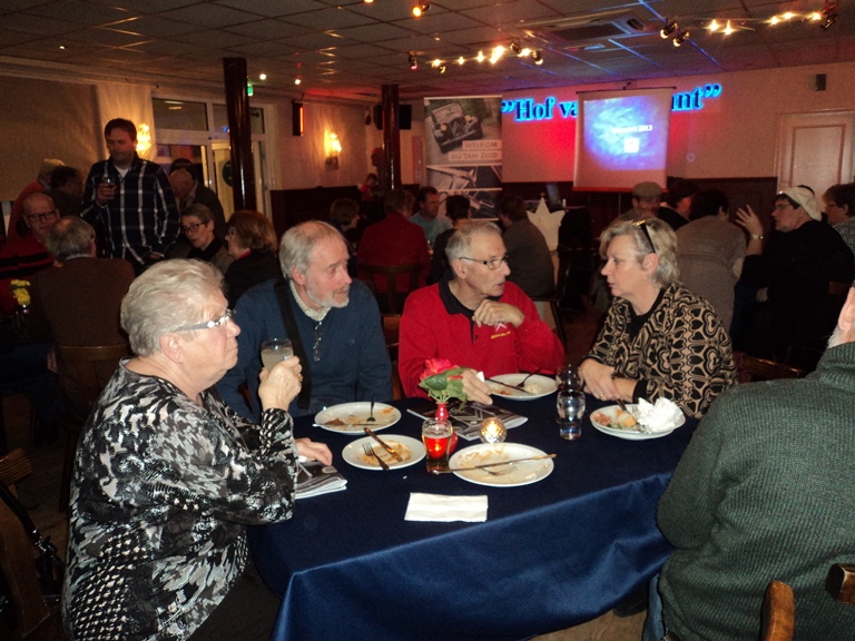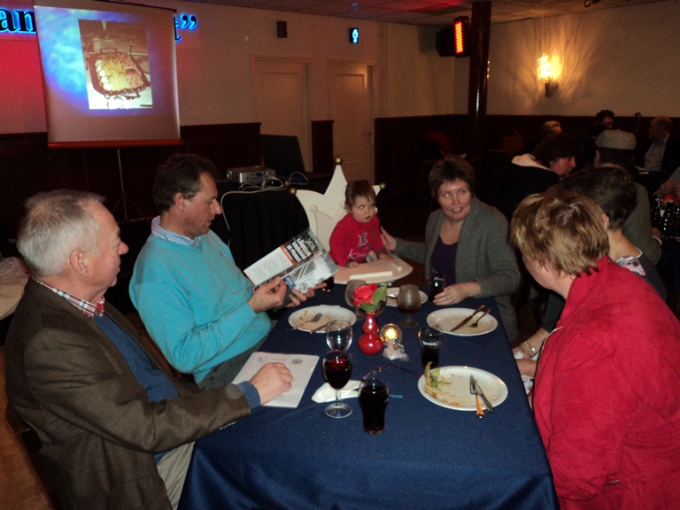 Hierna werd het warm en koud buffet geopend door de organisator van deze Nieuwjaarsreceptie, Leontien van Eijk. Inmiddels werd, tijdens het eten, ons boekje al flink verkocht zodat we nu reeds kunnen zeggen dat wie er nog een wil hebben zeker niet te lang dient te wachten om dit kenbaar te maken, want op is op. Als medeschrijver kan ik u mededelen dat het een fraai stukje geschiedenis van onze club weergeeft. Rond 18.00 uur vertrokken de laatste deelnemers en konden we terugzien op weer een zeer geslaagde nieuwjaarsreceptie.