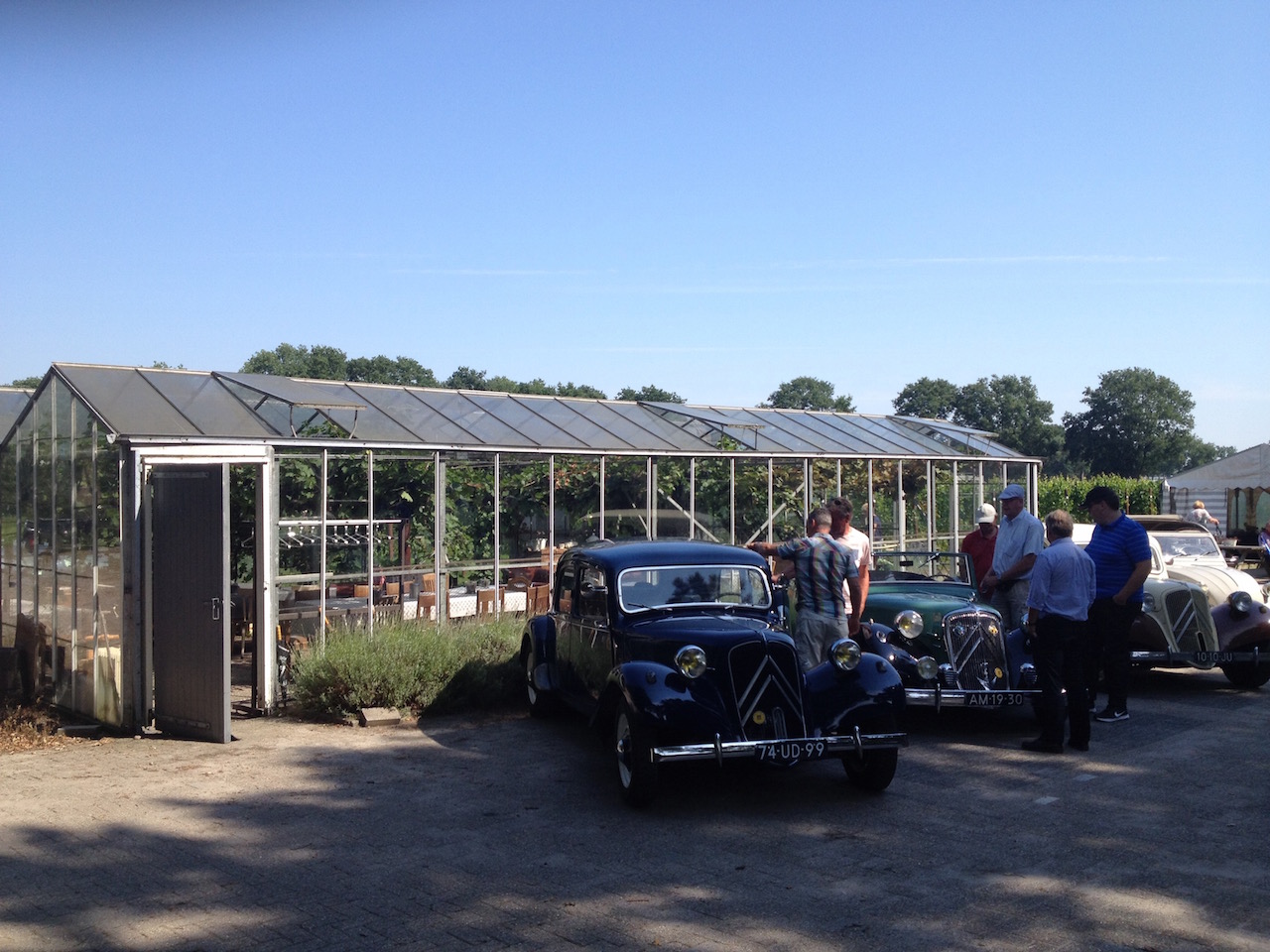 Voor de middag gingen we met de Tractions een mooie route rijden in het grensgebied met Belgie. Bart van de Loo en Paul Officier hadden kleine weggetjes gevonden en dankzij de heldere beschrijving kwamen we (bijna) allemaal weer op het beginpunt terug. Overigens had Gilbert ook een mooie eend, omgebouwd tot pick-up, voor zijn wijnboerderij staan. Je ziet dan als vanzelf een kringetje liefhebbers rondom het vehikel om te kijken hoe dit in elkaar was gezet.