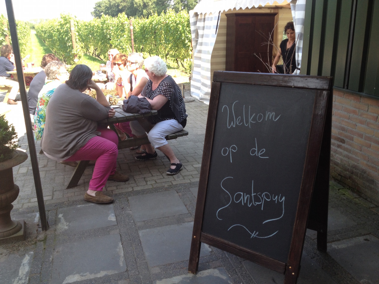 Omdat wijn maken toch een vak apart is werkt men samen met vrijwilligers en vinologen om een lekkere wijn te produceren. De witte wijn smaakte dan ook goed, en vervolgens werden de wijnstokken bewonderd en kregen we ook te zien hoe de wijn gebotteld wordt.