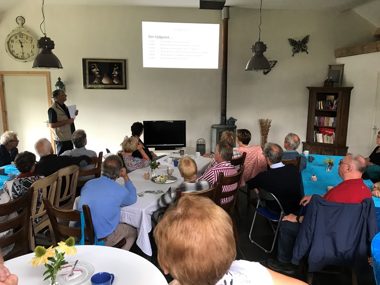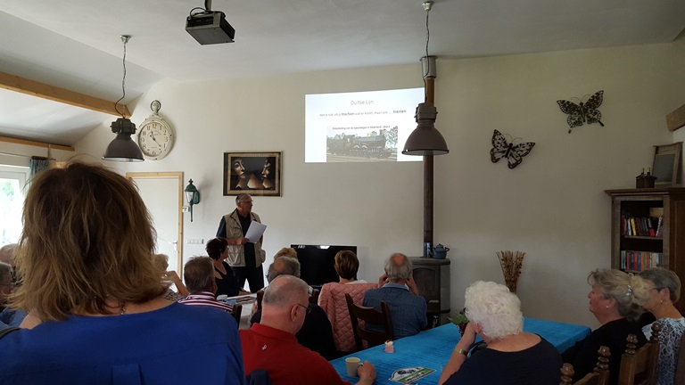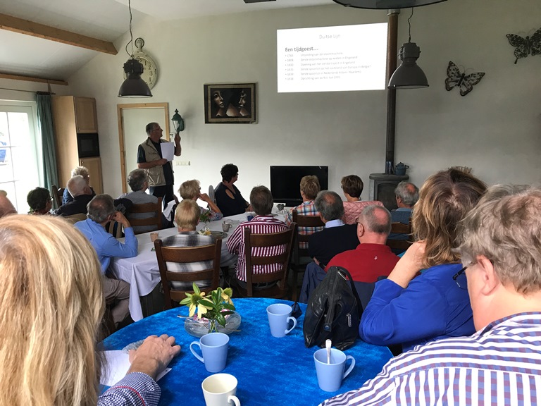 Na het welkoms woord van onze voorzitter Marc Vos was het woord aan John Branderhorst. John heeft als hobby treintjes maar dan niet alleen de modelspoorbaan maar het echte werk van weleer. Er was een prachtig verhaal voorbereid wat ons o.a. leidde door de geschiedenis van de trein. Daarnaast heeft John “het Duitse lijntje” altijd beziggehouden. Hij heeft de geschiedenis in zijn geheel tot zich genomen en met ons gedeeld. Ook werden ter plekke nog wat aanvullingen gegeven door Theo Baijens wiens vader gediend heeft tijdens het uitbreken van de 2e wereldoorlog.