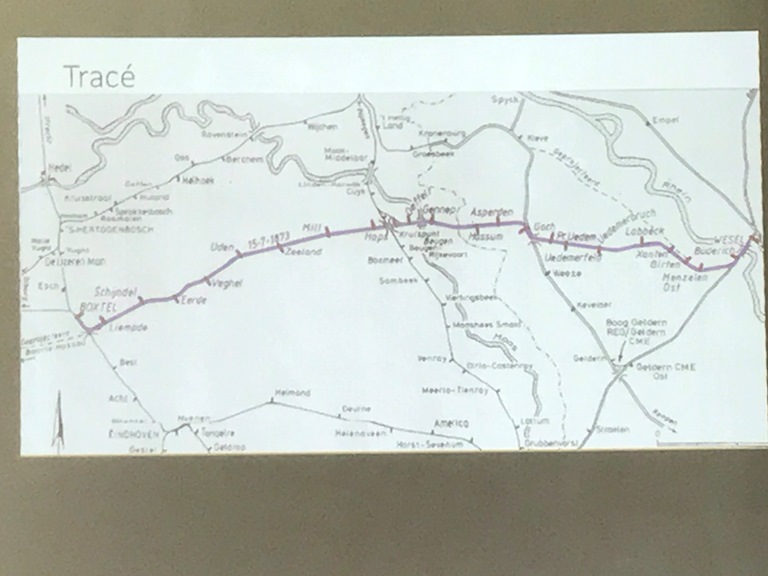 Het verhaal van John was een voorbode van een mooi uitgezette rit door John en Jan Uijlings, die door het regenachtige weer van eerder, wat ingekort was. De rit leidde ons lang diverse herkenningspunten die indertijd zijn opgezet voor dit beruchte Duitse lijntje. Zo passeerde we oude stations, oude spoorwegovergangen maar ook spoorversperringen die de opmars van de Duitsers tijdens de eerste dagen van de oorlog moesten stuiten. Een mooie rit maar voor verdere gedetailleerde informatie verwijs ik graag naar de gedetailleerde informatie die op de website beschikbaar komt.