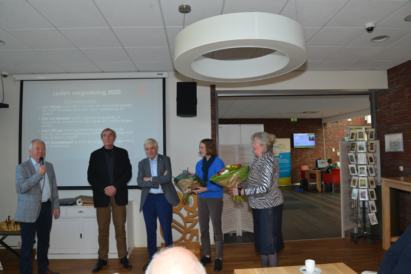 De scheidende bestuursleden werden even als hun eega’s in het zonnetje gezet en met een mooi aandenken – ontworpen en geproduceerd door Arie van Aken – en bedankt voor hun inzet. Met name Jan Uijlings heeft vele jaren als bestuurslid in onze afdeling gefungeerd binnen diverse functies.