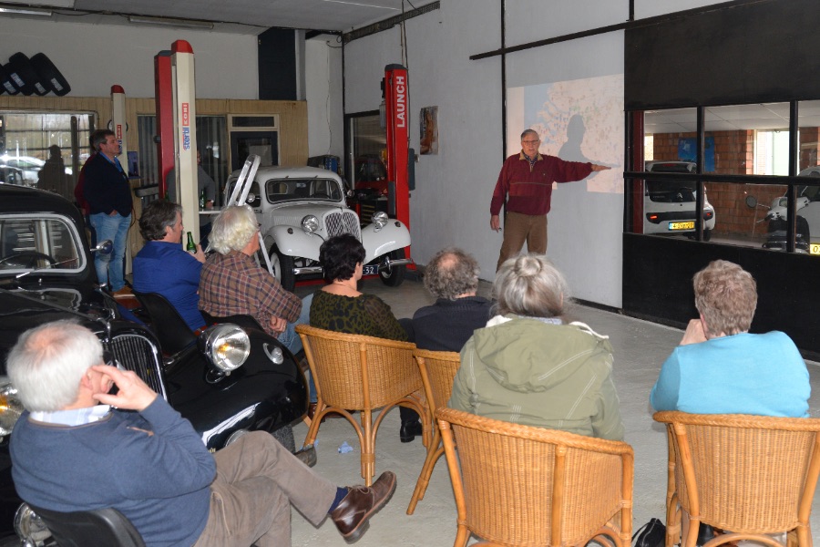 Ze waren er ook op tijd, want de garage, lekker verwarmd en spic en span, vulde zich met uiteindelijk ruim 19 personen. De meegebrachte (kleine) Bossche Bollen waren gelukkig voldoende om eenieder te laten smullen bij de koffie of thee, die door de gastheer werd geserveerd. Een welkom door bestuurslid John Branderhorst werd meteen gevolgd met een voorstellingsrond onder leiding van spreekstalmeester Erik van Munster. Dat hebben we geweten. Iedereen nam het woord door voor de groep zich te presenteren en hielden een kort of lang referaat hoe zij aan de Traction waren gekomen en hoe zij er nu mee omgingen. Een greep uit de presentaties: