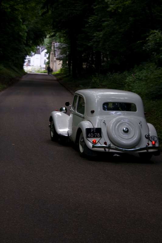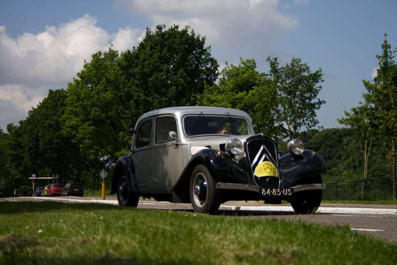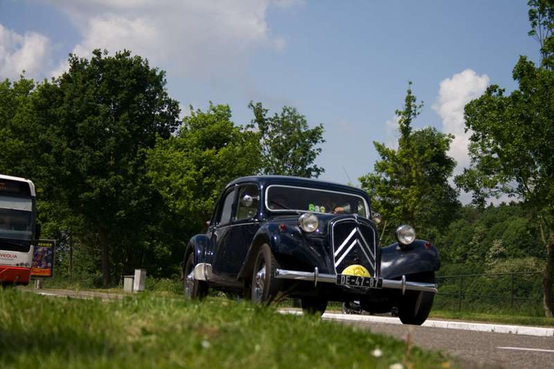 Dit jaar waren we na een leuke rit ook nog opgenomen in een echt defilé. Iedere Tractionist werd met zijn auto (type en bijzonderheden) aangekondigd en diende een vraag over Citroen of de Traction te beantwoorden. Een correct antwoord leverde een prijs op. De chauffeur mocht daarna proberen op een minuscule rotonde zijn Traction te keren zodat de volgende Traction zijn aantreden kon maken.