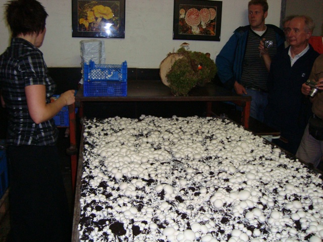 Na dit defilé werd de rit hervat om bij een champignon teler (5 ton per week voornamelijk voor de export) een stop te maken. Hier kregen we naast een film en een rondleiding ook diverse champignon heerlijkheden voorgezet. Deze smaakte diverse tractionisten zo goed dat de latere asperge consumptie hier onder heeft geleden. Dit jaar bleef er voor het eerst in de aspergerit geschiedenis een aantal schalen asperges over.