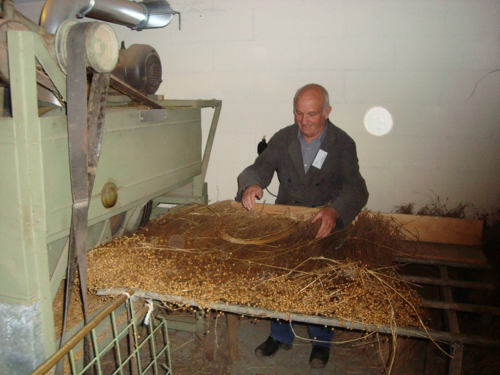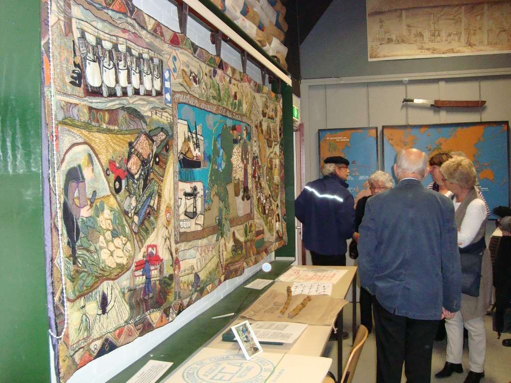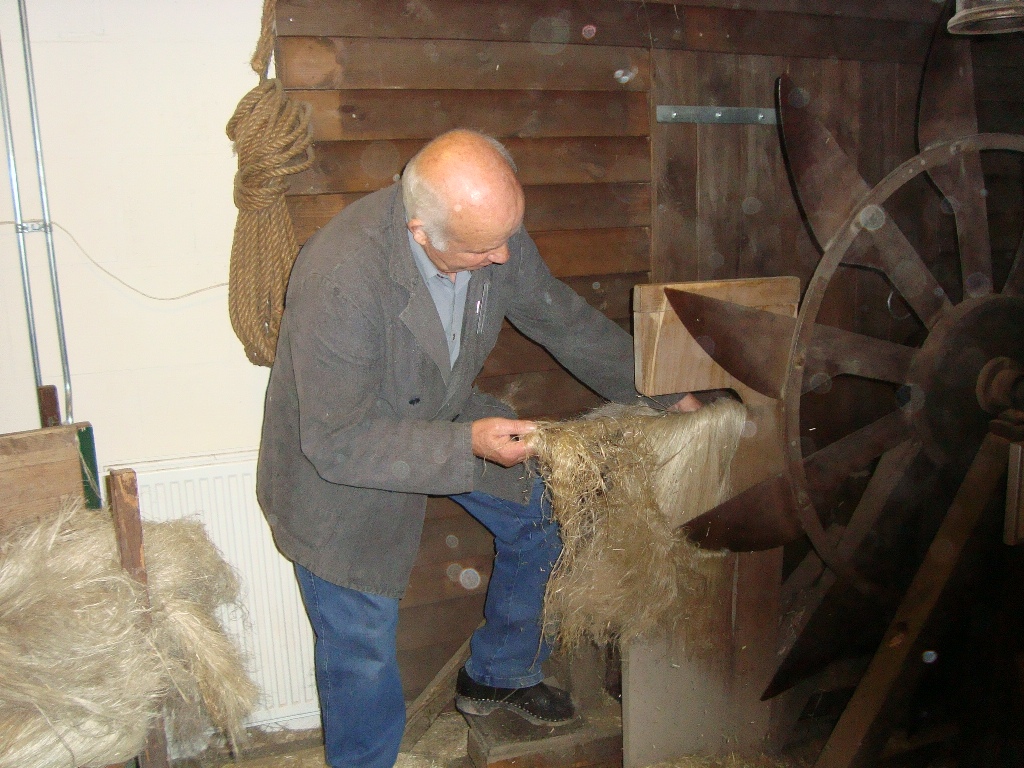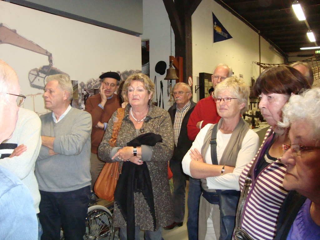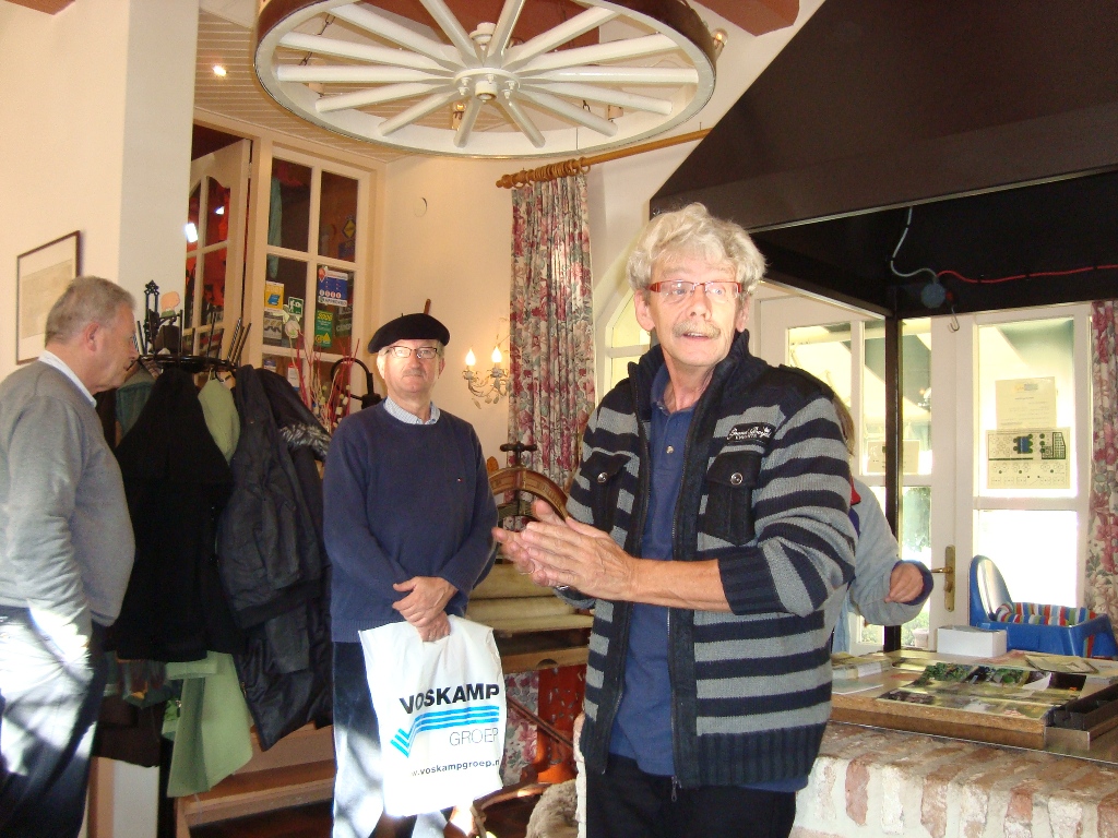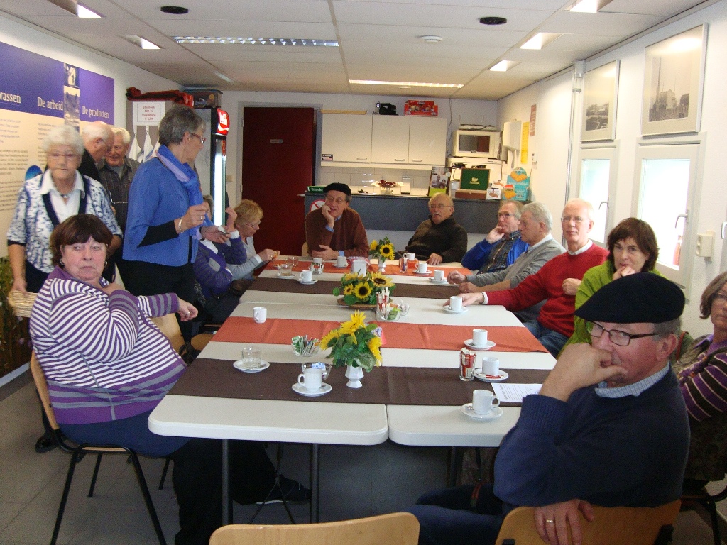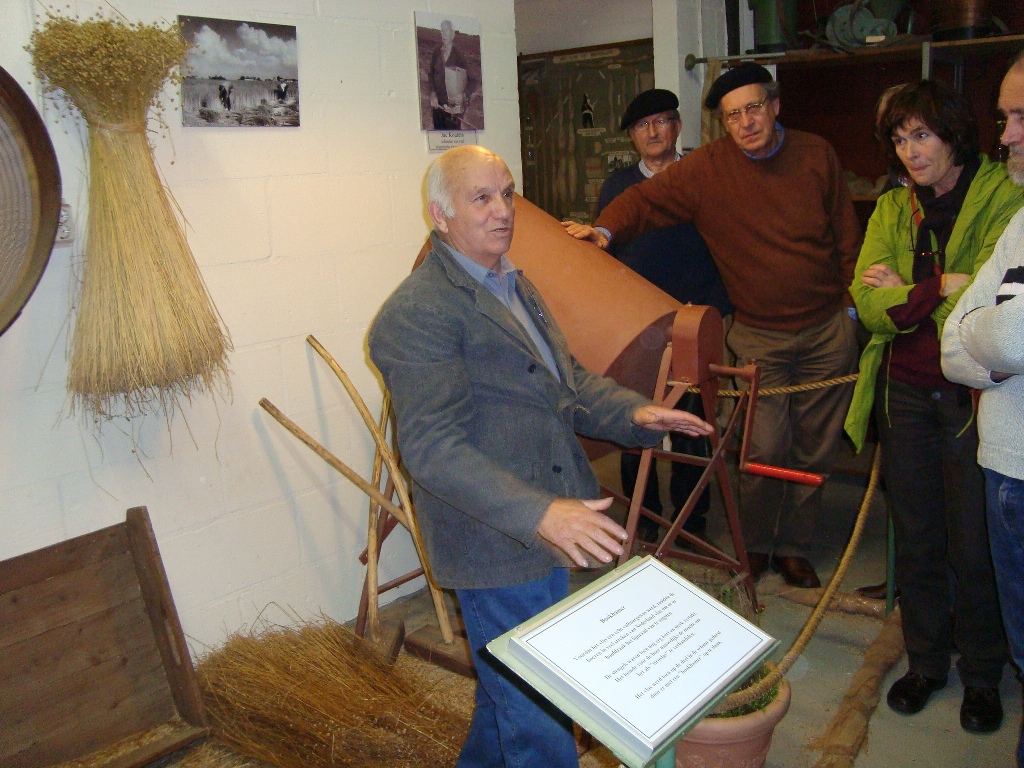 Weer een stuk verder kwamen we bij Klundert aan, waar een lunch voor ons klaar stond in het Vlas en Suikermuseum. We werden hartelijk ontvangen door de vrijwilligers die het museum runnen. De groep werd in tweeën gedeeld en we gingen eerst 'het vlas in'. Theo van de Luytgaarde had vele jaren in het vlas gewerkt en legde ons stap voor stap het proces uit van zaaien, oogsten en verwerken. We zagen hoe langer hoe meer 'martelwerktuigen' waarmee de vezels van het vlas werden bewerkt. Als je zag hoe dat vroeger ging, dacht je al snel hoeveel vingers en armen hier verloren moeten zijn geraakt. Ronddraaiende messen, aandrijfbanden, persrollen, je kon op wel 10 manieren je lichaam een beetje inkorten.