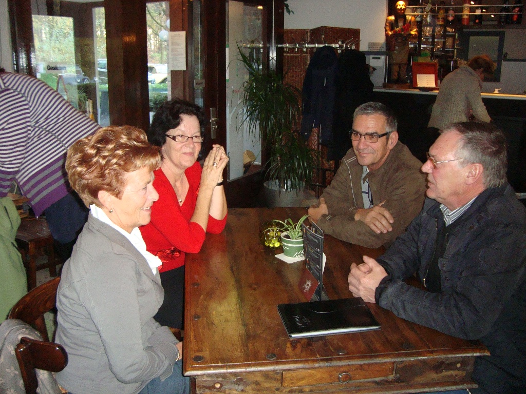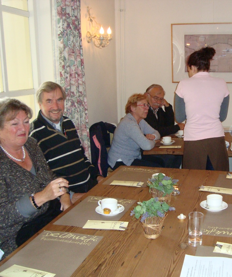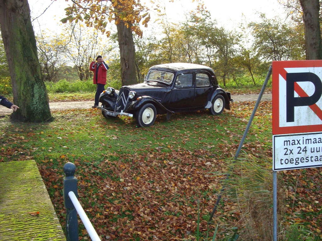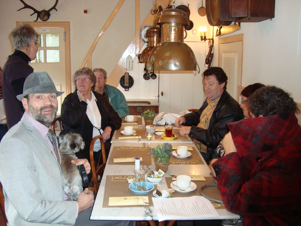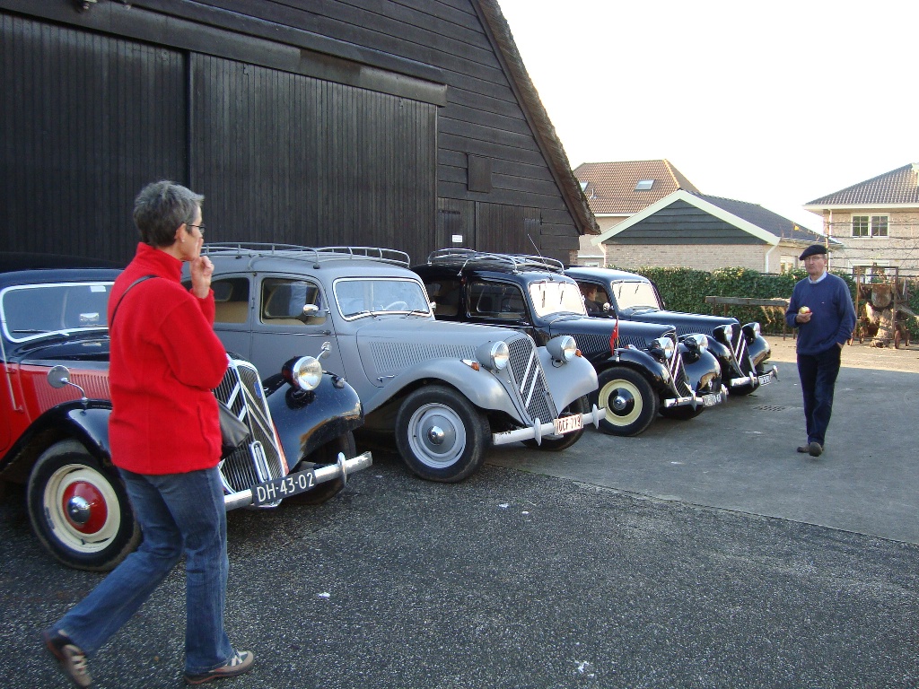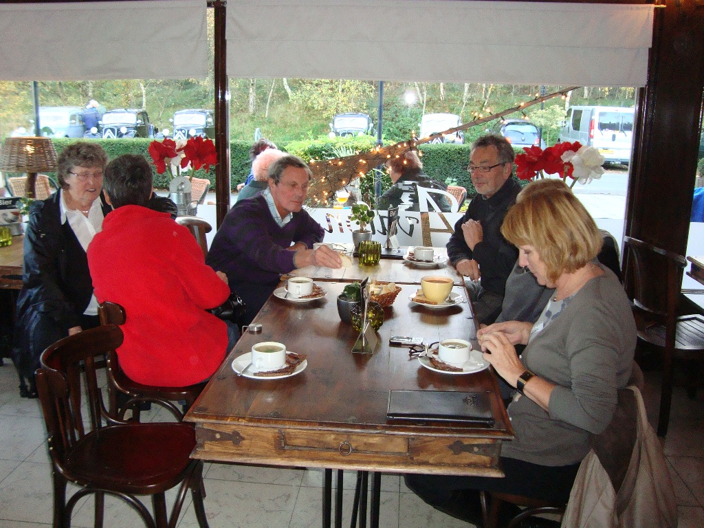Gezellig gezeten aan de koffie met verse apfelstrudel en slagroom kwamen de verhalen al snel los en zagen we telkens weer een Traction het pad op rijden. In totaal waren we met 21 auto's en 45 personen. Nadat ritmeester Cees ons duidelijk maakte dat we toch echt over een stuk onverhard moesten - geen ontkomen aan - begonnen we in ganzenpas aan de rit.