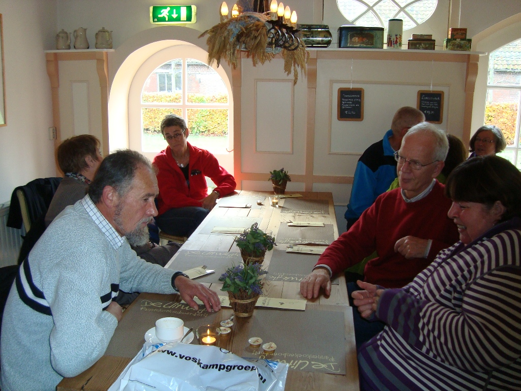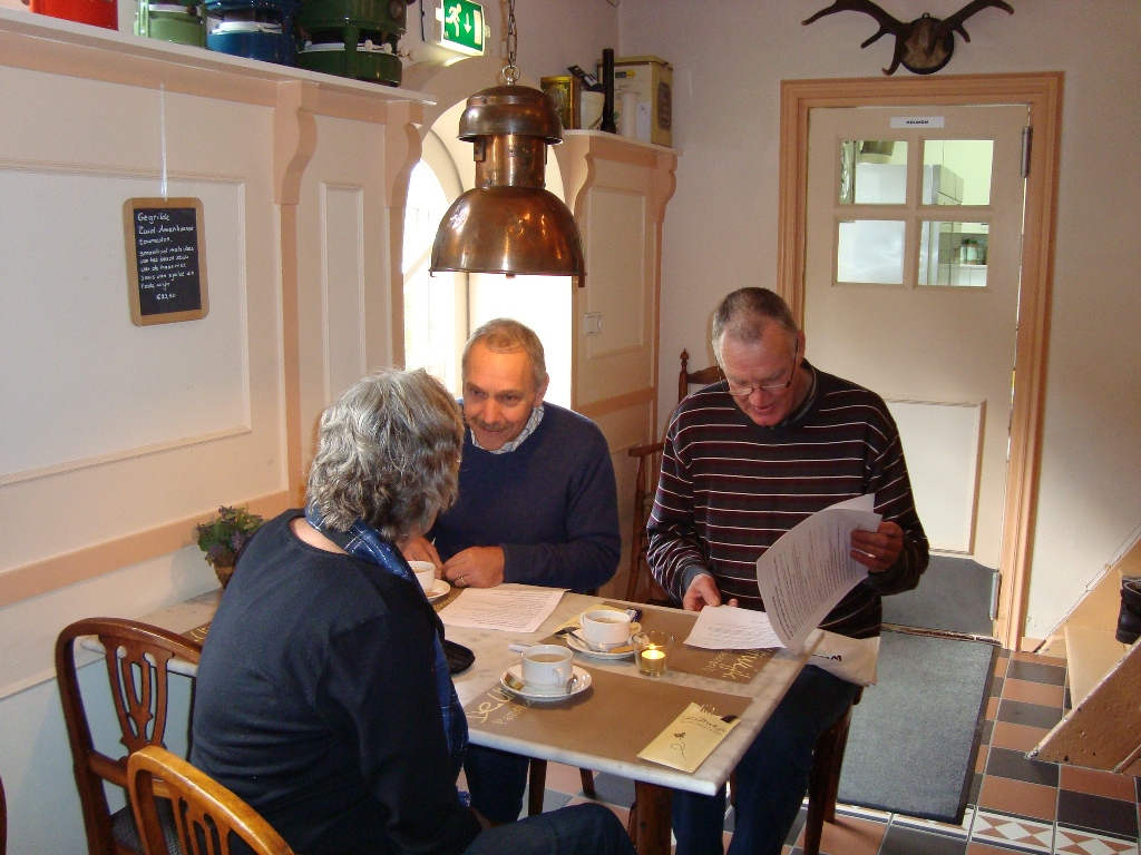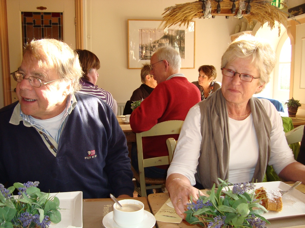 Eindpunt was restaurant Avalon in de buurt van Bergen op Zoom. Gelegen aan een mooie zandverstuiving met een geweldig uitzicht een mooie stek om neer te strijken. De keukenploeg had zich goed van haar taak gekweten, want al rap werd de hete snert uitgeserveerd met een lekker stuk roggebrood en spek. Dat ging er wel in na deze tocht van 70 kilometer! En voor wie er nog honger had was er nog veel meer snert. Voldaan hoorden we dus het dankwoord van Rolf van der Zande aan, die de drie organisatoren nog eens hartelijk bedankte voor al het moois dat we deze dag hadden gezien en ervaren.
