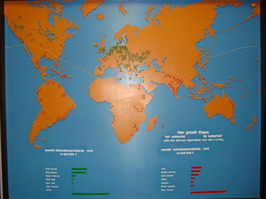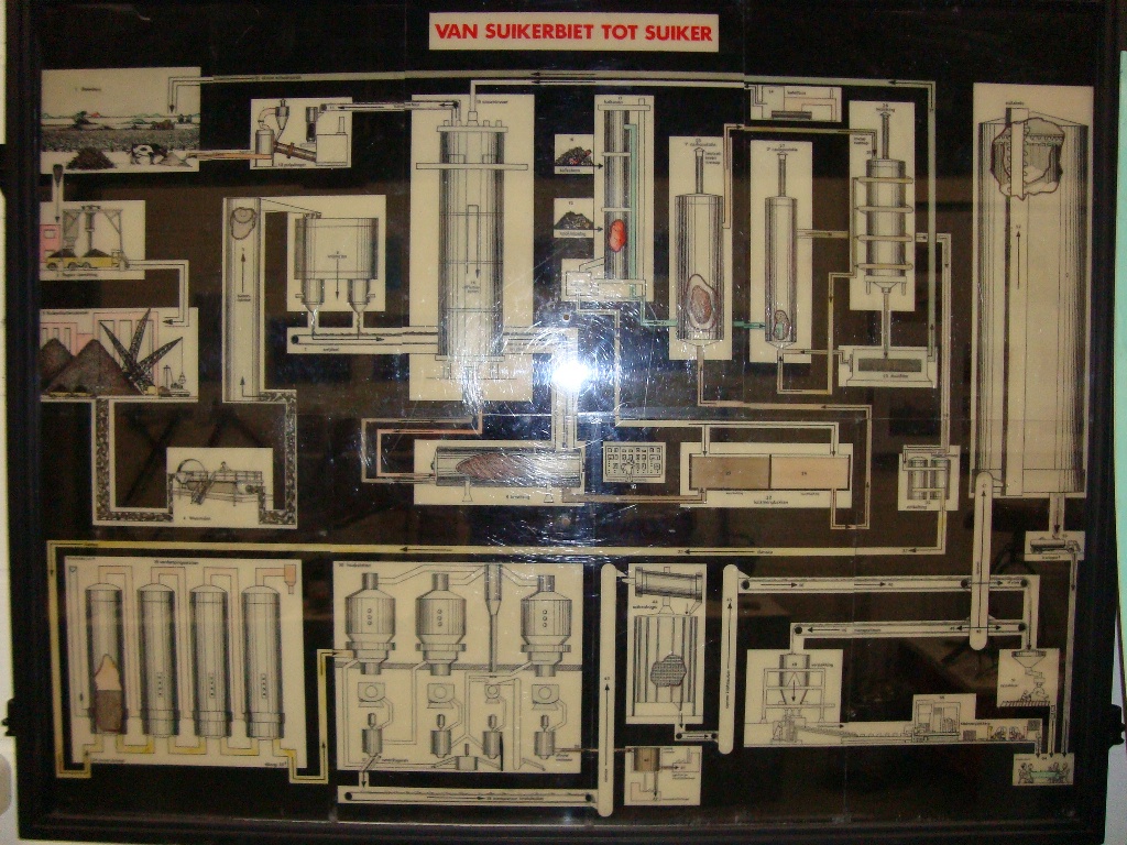Met wat rode ogen van de stofallergie kwamen we uit het vlas en gingen naar het zoet. Daar kregen we een verhaal over de suikerbiet en het suikerriet. Het begon met suikerriet dat in Polynesië groeide en als proviand werd meegenomen op ontdekkingstochten. Vandaar groeiden de stekjes in Azië tot een veelgebruikte soort grondstof. De Engelsen hadden later de suikerriethandel in handen, en dus wilde Napoleon zelf suiker telen. De suikerbiet werd gespot als mooi alternatief. Door het veredelen van de oorspronkelijke langwerpige biet met een laag suikergehalte, werd de ronde biet (als een tol) ontwikkeld. Deze vind je nu in grote getale op de West-Brabantse klei, om vervolgens na een bietencampagne tot suiker en veevoer te worden verwerkt.