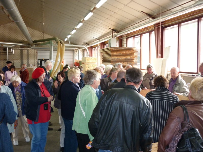 In de auto ontstond een wat aparte sfeer toen we het parkeerterrein opreden van een heuse uitvaartkisten fabriek. Na wat grappen over dit ‘eindpunt’ werden wij in de fabriek van de firma Janssen hartelijk welkom geheten door de eigenaar. Het is een familiezaak die al meer dan 100 jaar tot een van de grote spelers behoort op dit terrein. De fabriek is op tal van punten volledig gemechaniseerd en voldoet aan alle keurmerken die tegenwoordig gesteld worden door de grote uitvaartpartijen. Dit moet ook wel want de concurrentie is ‘moordend’.