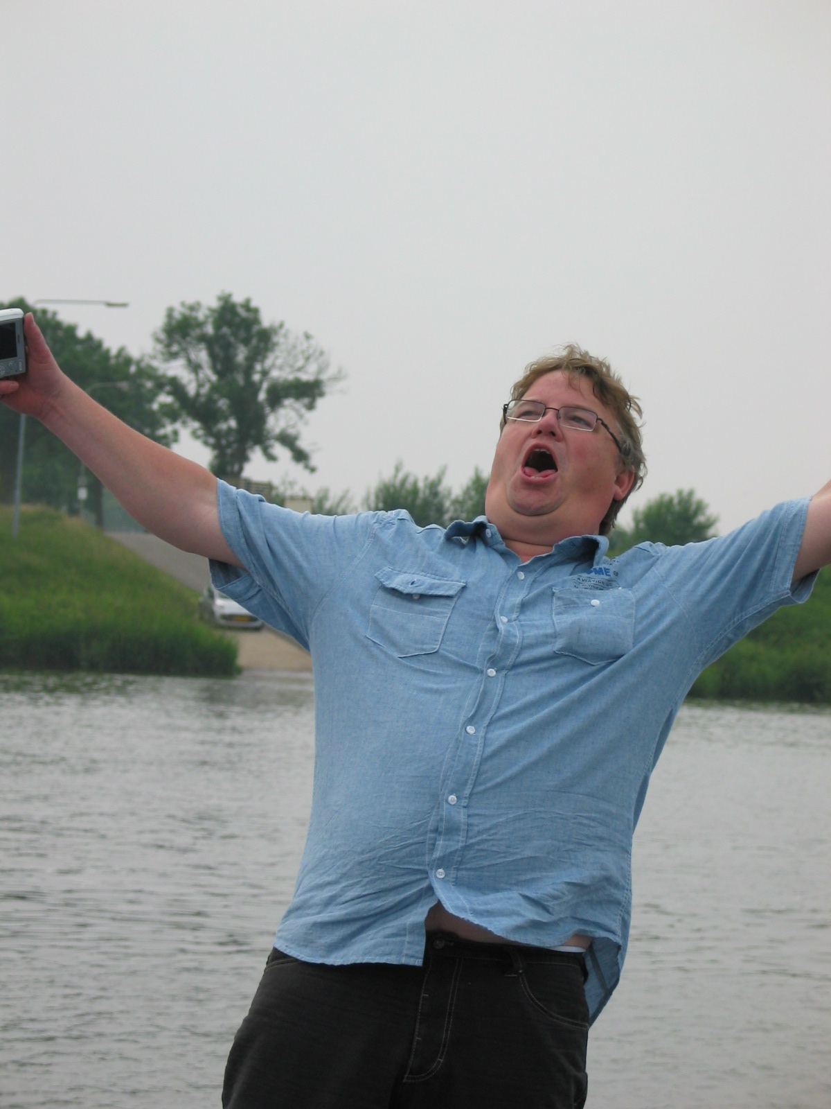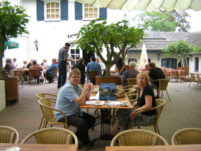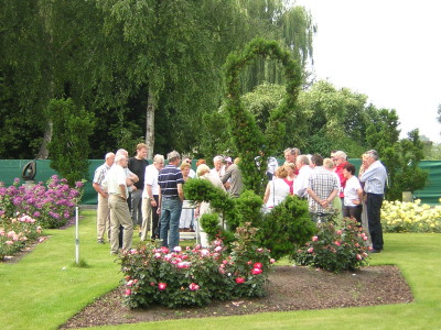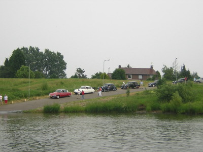 Eerst door vele mooie dorpjes langs de Maas, waar men massaal de vlag ter begroeting van ons had uitgehangen, om vervolgens over de Maas Duitsland in te gaan. Of het nu aan het vals plat lag of aan het feit dat het Duitsland was dat we inreden, maar de Dame had er even wat moeite mee.Na een tijdje reden we door een ware spookstad om vervolgens via een paarden drafterrein bij honderden voormalige atoombunkers uit te komen. Deze bleken ook nog eens te koop te zijn waardoor er in menig trax de fantasie op hol sloeg over wat je al niet met zo'n bunker kunt. Na enige fraaie Duitse dorpjes, waar ze niet voor ons vlagden, kwamen we weer terug in Nederland. Overigens het eerste huis na de Duits-Nederlandse grens had weer de vlag uit. We hadden een stop met wederom koffie en vlaai in de fantastische omgeving van een rosarium. Hier kon men een rondleiding door, annex spoedcursus over, diverse soorten rozenpaviljoenen krijgen, of gezellig aan de 'theke' blijven hangen met een lokale moppentapper. Ook was er een Afrikaanse beeldententoonstelling.Voor het laatste gedeelte van de rit gingen we door het fraaie Arcen en stond een oversteek met het pontje gepland. Deze werd de organisator van de jaarlijkse aspergerit bijna fataal (zie foto). Gelukkig liep alles met een sisser af zodat we hopelijk volgend jaar weer van een aspergerit kunnen genieten. We sloten de dag traditioneel af met onbeperkt genieten van de asperges.