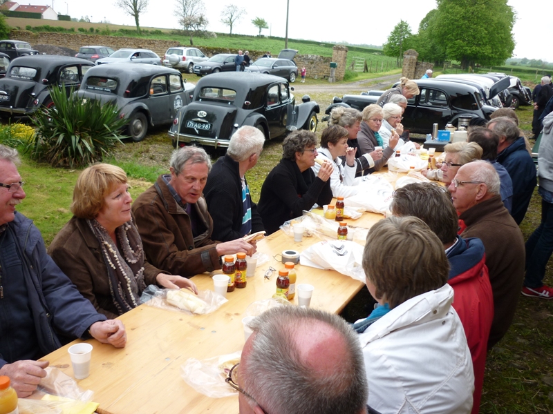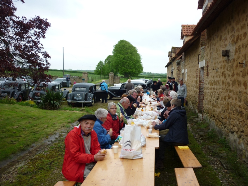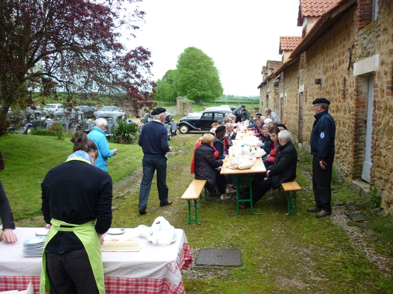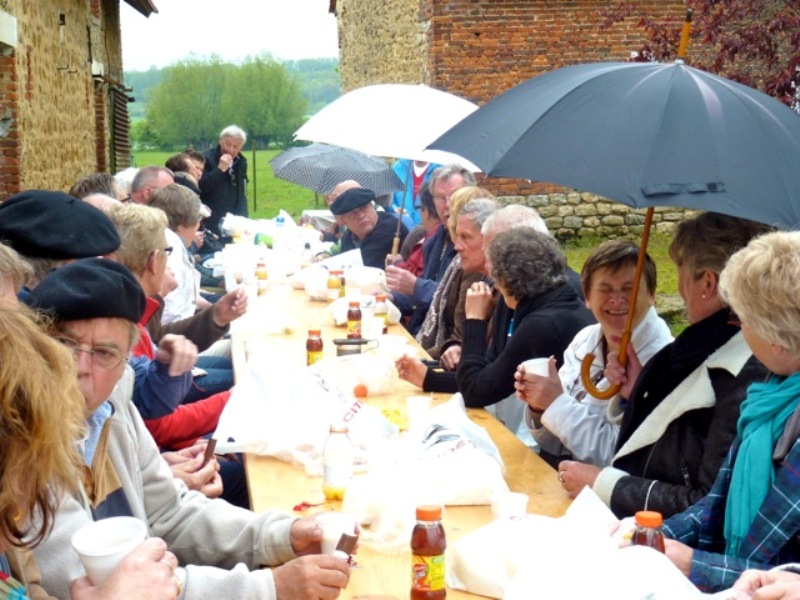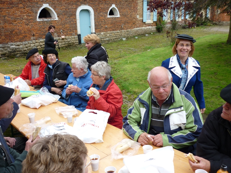 Uitgerust startten we de vrijdag met een individuele rit door het regionale Natuurpark. Een prachtige omgeving met zon maar ook regen. De lunch was op een unieke locatie. Een boerderij uit de zestiende eeuw (Ferme MIONET in Leubringhen) was het decor voor de uitklaptafels, banken en de vele tassen gevuld met, maar vooral voor de uitbundige leden die tussen de buien door droog van de lunchhapjes konden genieten. Paul had daarbij zijn i-pod op een speaker gezet, waardoor de chansons de fantastische sfeer verhoogde. Aan het einde van de lunch bood de Ferme iedereen als verrassing, huisgemaakte boerenijs aan. Dat was echt smullen.