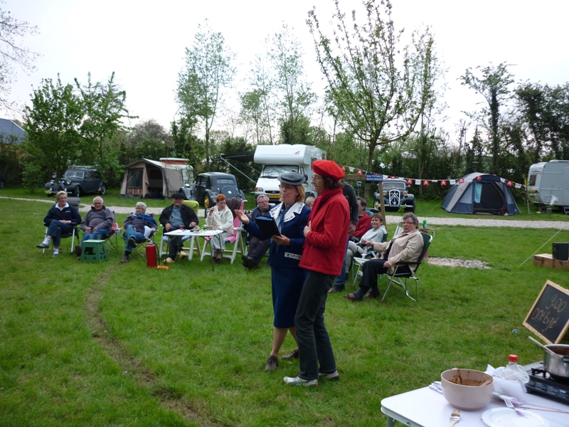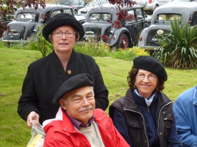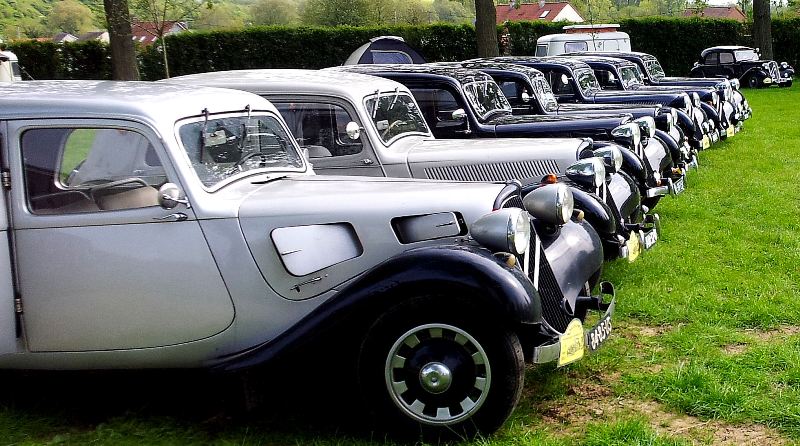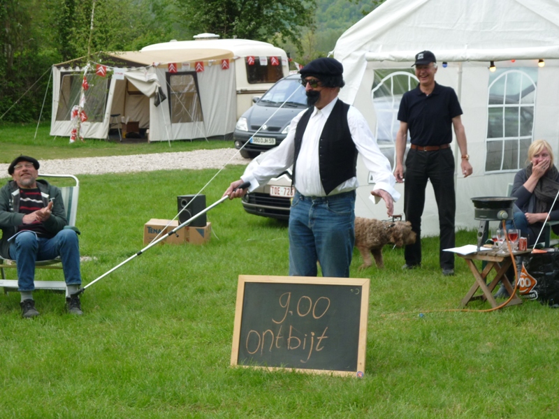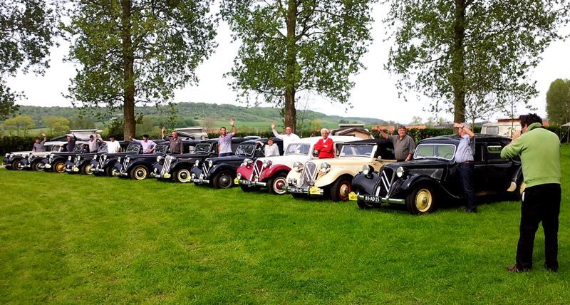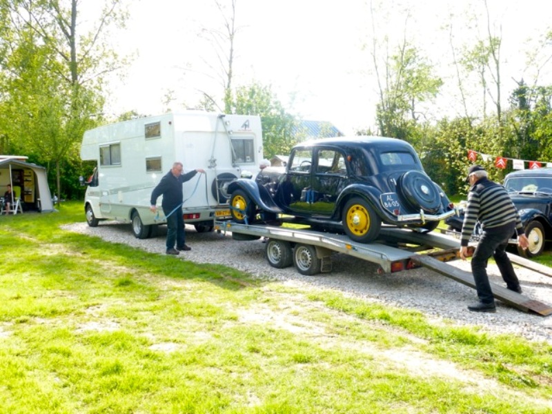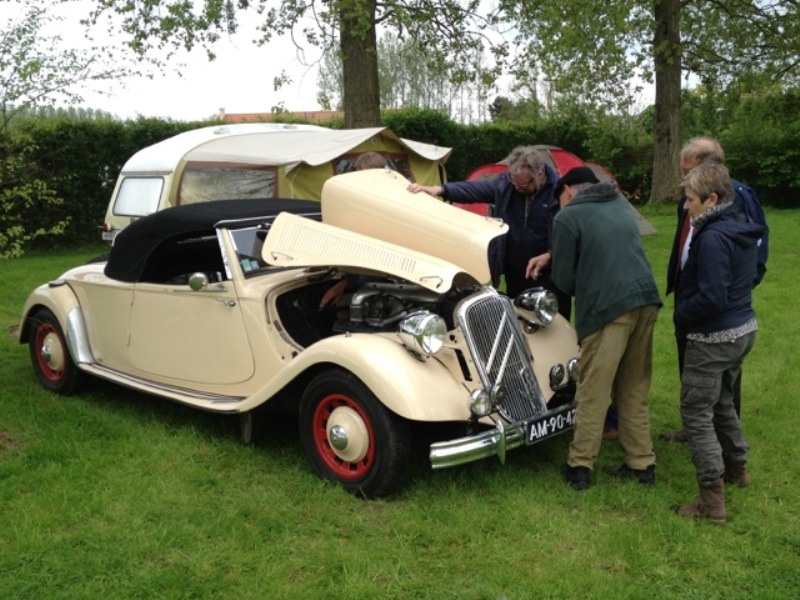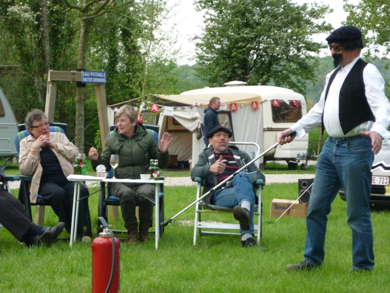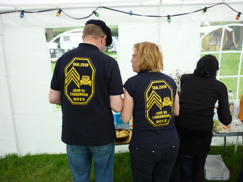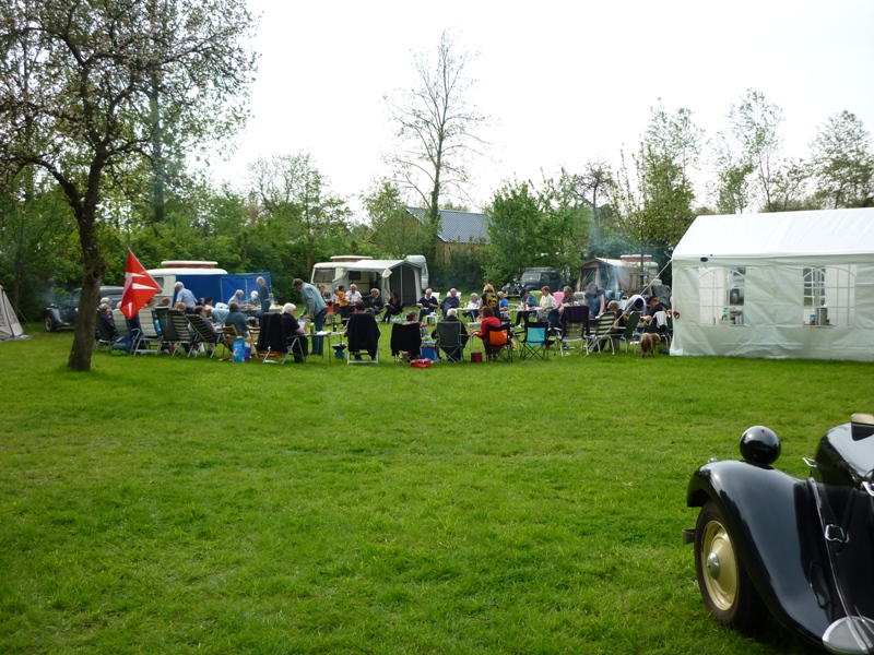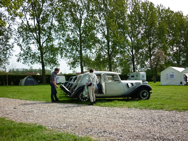 Woensdag was het al gezellig druk op de fantastische (kleine) camping des Trois Pays in Licques (Pas de Calais). Catherine et Denis Lance hadden als eigenaren een speciaal veld voor TAN vrijgemaakt, waar de Tractions, caravans en tenten in een grote kring konden staan met middenin de partytenten. Versieringen met afdelingvlaggen en lampen maakten het compleet. De welkomstborrel kon donderdag meteen van start, waarbij de ervaringen van de heenreis uitgewisseld werden. Geen echte problemen met de voitures; buiten een uitgelopen motorlager (dan toch maar de luxe wagen opgehaald), geoxideerd contact van een startschakelaar, een niet ladende dynamo en wat afstellingen waren de werkzaamheden op het TAN-veld.
