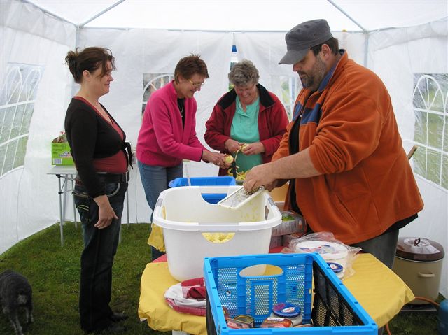 De catering op de eerste avond was uitstekend verzorgd door de families Helbers en Bakker. Er werd de hele middag hard gewerkt om voor zoveel mensen een maaltijd te maken. We zaten in een grote kring rond de keuken tent en lieten ons de soep en salade goed smaken!