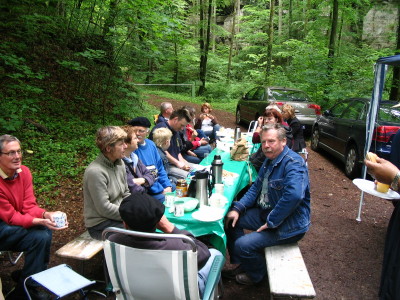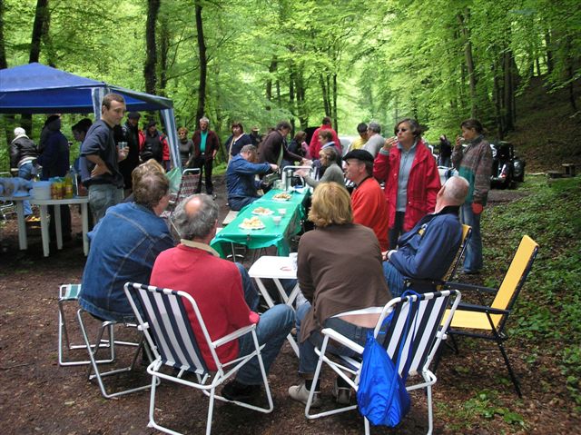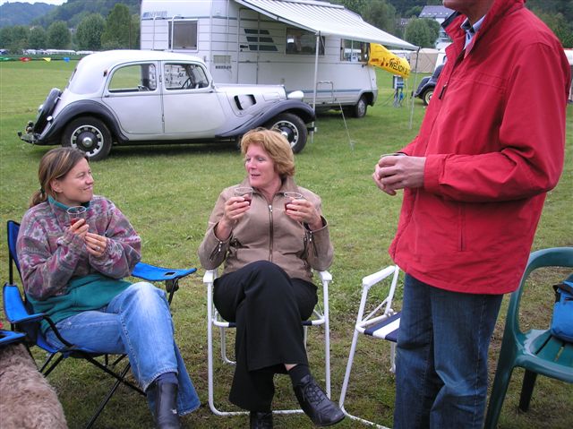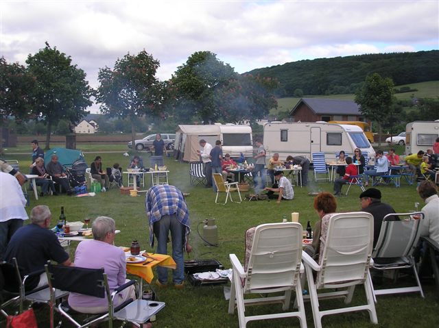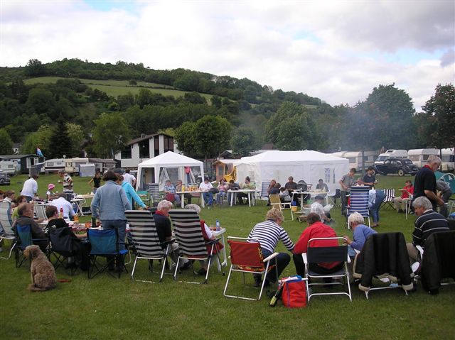 De organisatoren Rob Helbers en Daan Bakker hadden hun best gedaan om een mooie camping te vinden in Klein Zwitserland. Prachtig uitzicht op de heuvels rondom Diekirch en we hadden een mooi veld voor de club. Ook dit jaar waren we weer met een grote groep (72 personen) en de stemming zat er meteen goed in. Gezellig bijkletsen met elkaar onder het genot van een kop koffie of iets sterkers...