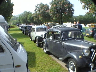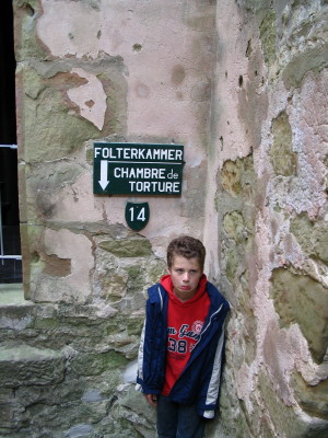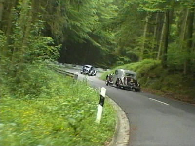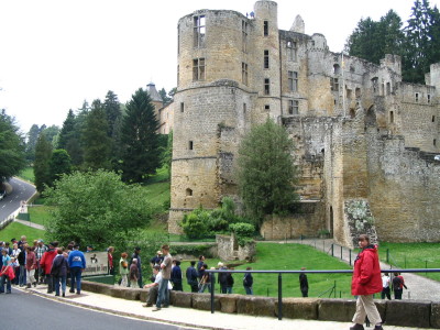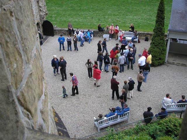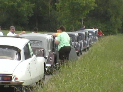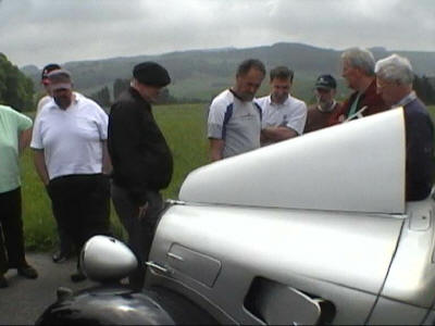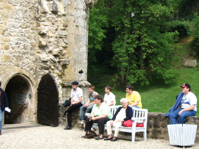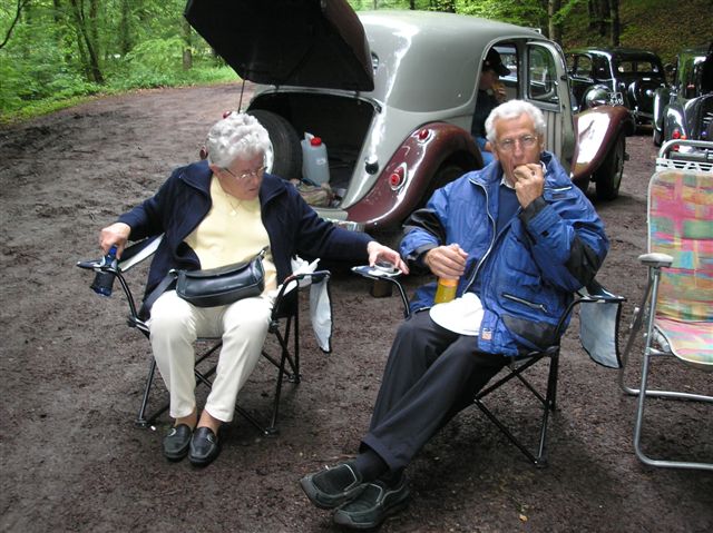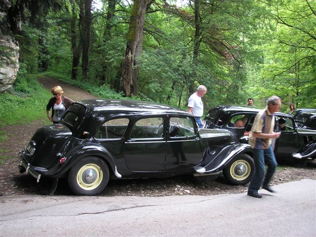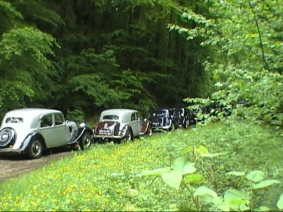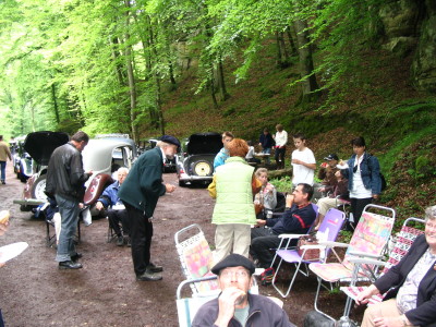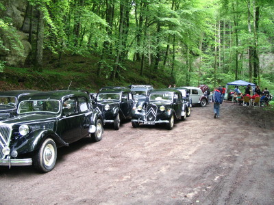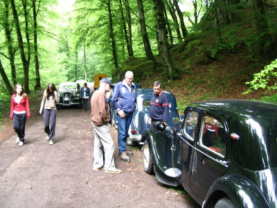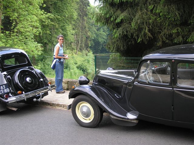 's Middags voerde de tocht ons naar het kasteel van Beaufort. Met de hele groep beklommen we de ruïne. Een heuse gevangenis kelder en de martelkamer waren natuurlijk zaken die we even moesten inspecteren. Een echt gruwelkasteel dus. Ondertussen werden tientallen foto's geschoten van de rij met blinkende Tractions die langs de weg geparkeerd stond. Je moet weten dat Hans Schipper 's ochtends zwetend en driftig poetsend zijn best had gedaan om de zijne het meest van allemaal te laten glimmen. Bij een tussenstop bij een rotspartij een eindje verderop werd flink geklauterd, met name door de jeugd. Allen bewonderden Joep Kloth, die ondanks zijn krukken als een atleet snel boven was, en dat terwijl menig ander zich nog zuchtend naar boven werkte!