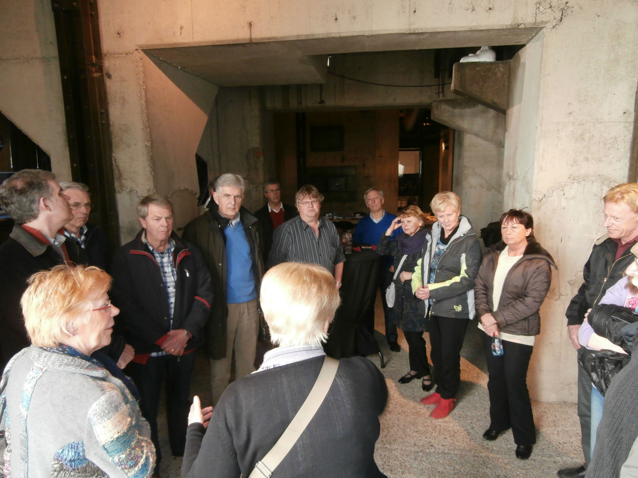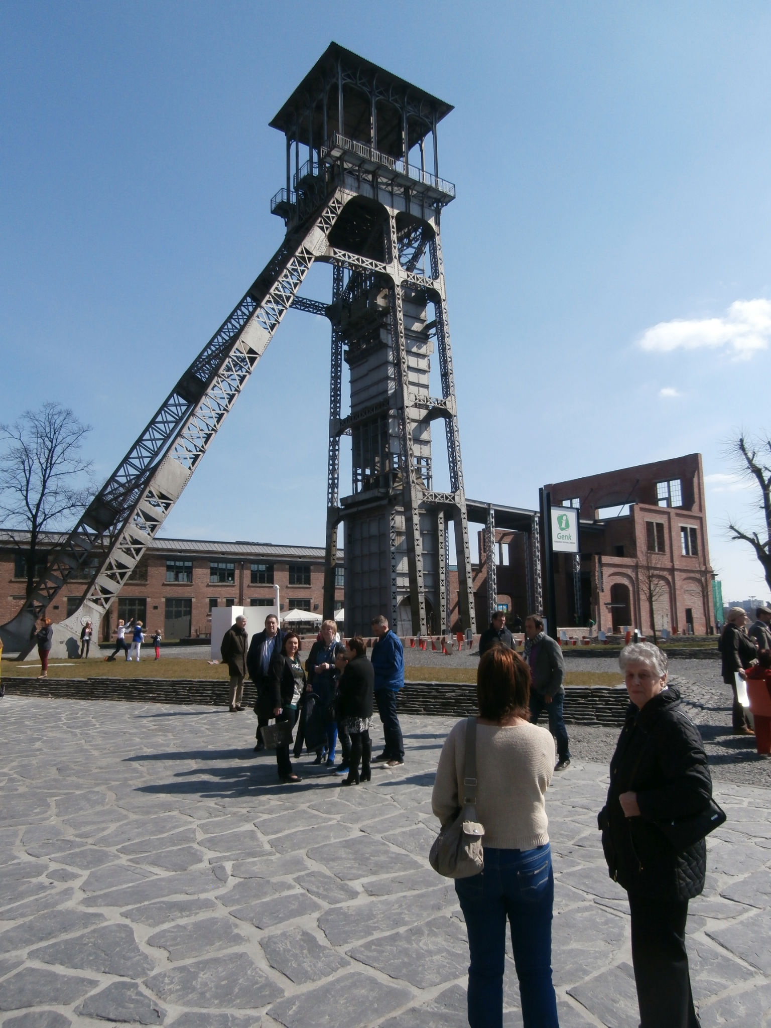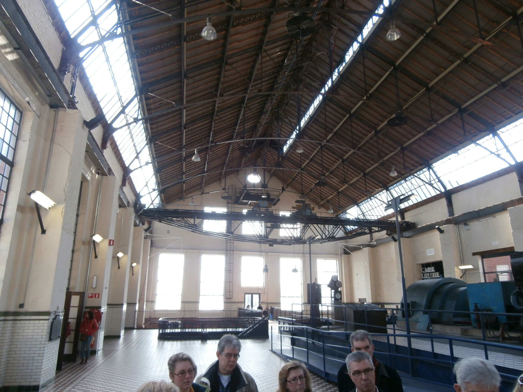 Na de koffie met vlaai en voor Marc en mijzelf de nodige TomTom’s en Garmins te hebben geladen met de routes voor deze dag vertrokken we richting de eerste bezienswaardigheid. Helaas hebben wij deze links moeten laten liggen omdat we met wat nagekomen tractionisten toch nog de lunch tijdig wilde bereiken. Ik begreep van de reacties van anderen, dat het aangrijpend was. De lunch vond plaats in Genk in de C-Mine. Deze was keurig georganiseerd. Daarna werd de groep verdeeld over twee gidsen. Een roze dame en een zwarte dame. Niet wetende dat deze kleuren ergens voor stonden sloot ik mij aan bij de roze dame. Na ongeveer een half uur moet ik tot mijn schande erkennen dat ik te midden van al die imposante oude machines en constructies (zie de foto’s) te weinig affiniteit had met de C van cultuur dat ik me stiekem aansloot bij de zwarte dame die zich juist op deze zaken had gespecialiseerd. Gelukkig zag ik dat de gastheer dit ook deed, waardoor ik me wat minder schuldig voelde. Deze mijn die niet zoals in Nederland een staatsmijn was, maar in particuliere handen lag van vooral Waalse rijken domineert nog steeds in grote mate het aangezicht van Gent. Het is nu een monument maar ook een cultureel terrein met bioscoop en diverse zalen voor manifestaties. Zeker de moeite van een bezoek waard.