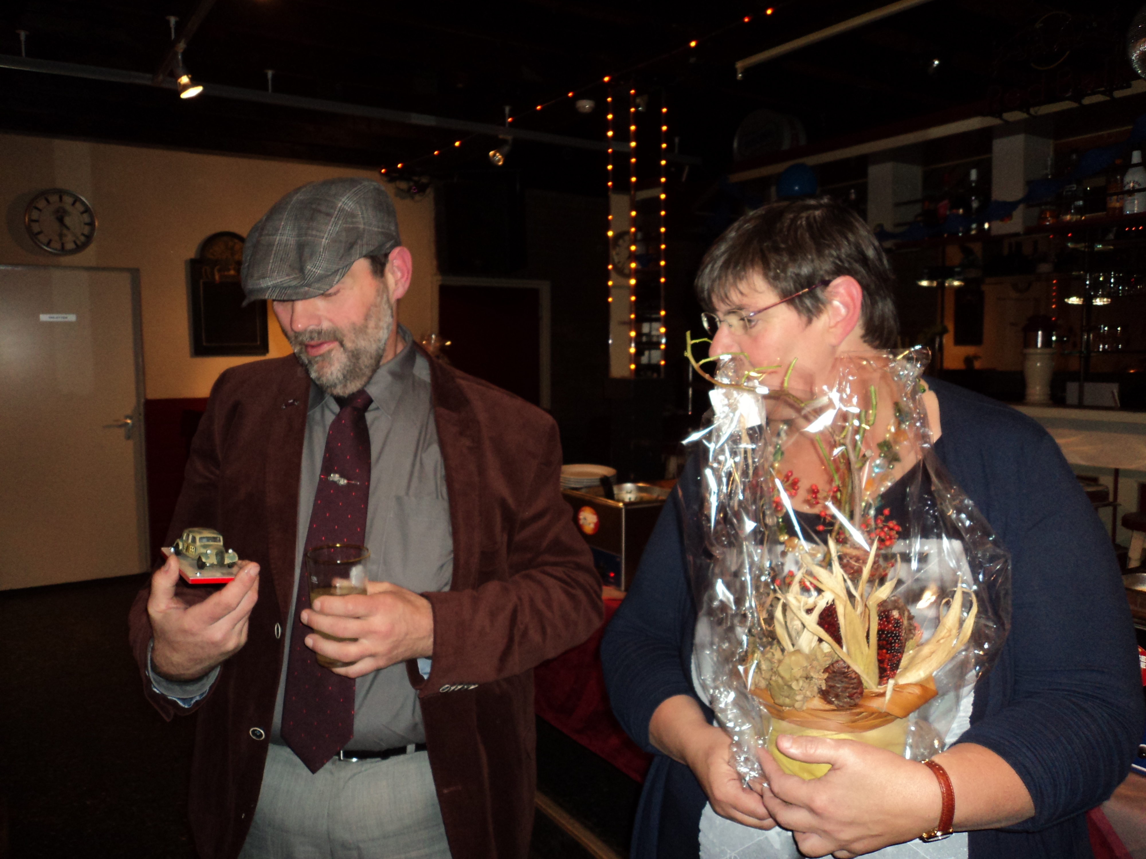 Daarna begonnen we aan het tweede gedeelte van de rit. Het gaf een geweldige zicht over dijkweggetjes en water. Uiteindelijk gingen we (zonder Traction) met het pontje naar Tiengemeten, waar ieder voor zich kon kiezen, of je ging wandelen, dan wel met een gids de kabouters van Rien Poortvliet bekijken, of naar het boerenmuseum gaan. Wij gingen naar het pannenkoekenhuis voor een drankje. Terug met het pontje volgde het laatste gedeelte van onze najaarsrit waar we via smalle straatjes in het fraaie Willemstad naar het restaurant gingen waar we als afsluiting eerst de prijsuitreiking van de puzzelrit kregen en daarna de beloofde stamppot opgediend kregen die ons waanzinnig goed smaakte. Voor iedereen was er nog een leuke attentie. Wilma en Ton hartelijk bedankt voor de zeer geslaagde afsluitende rit van 2013.