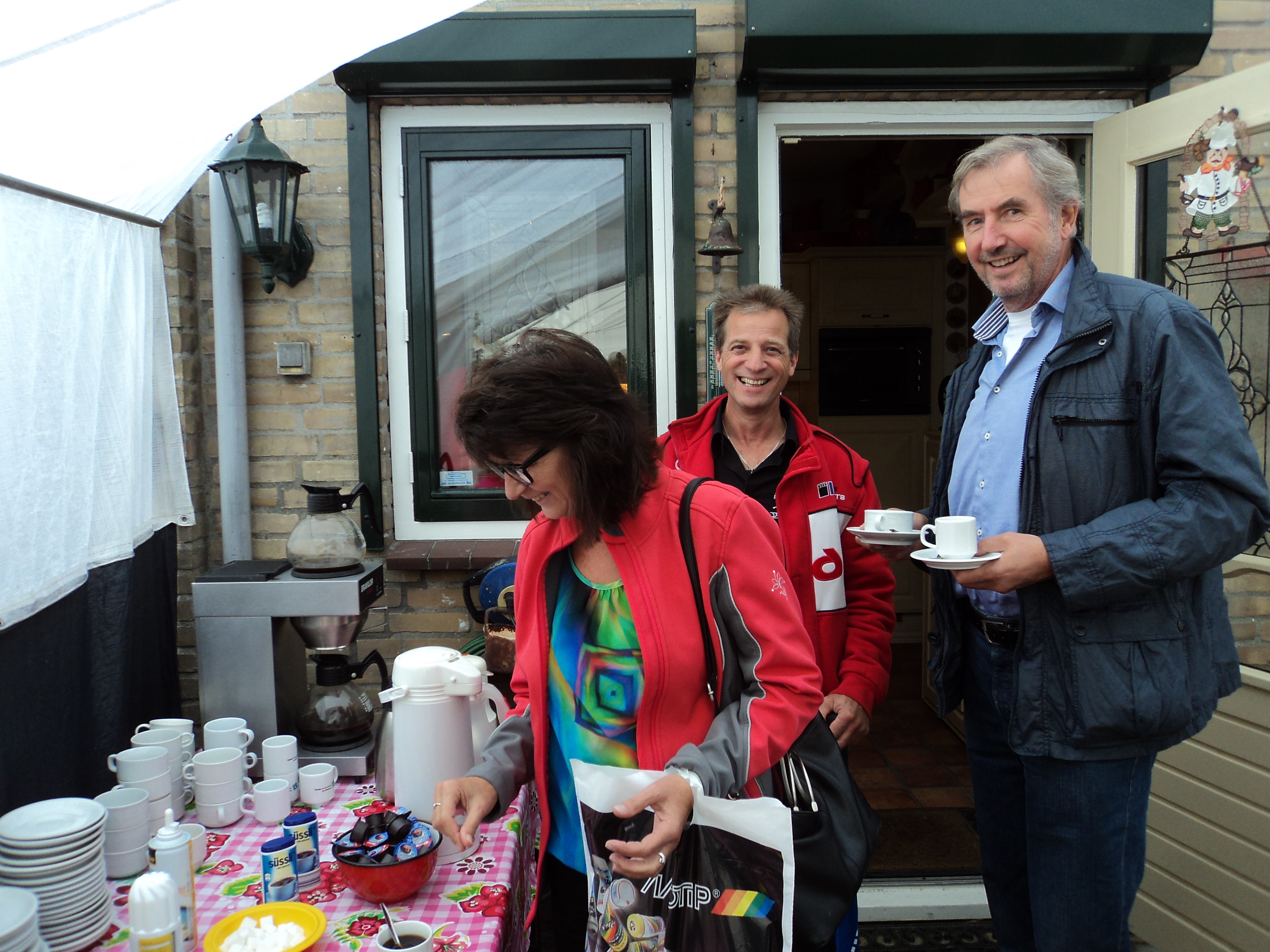 Ze hadden speciaal voor deze gelegenheid hun hele tuin overdekt. Daar ontvingen we ook een goodie-bag met naast diverse leuke hebben-dingetjes verder daarin het routeschildje, een routebeschrijving en de puzzelrit.