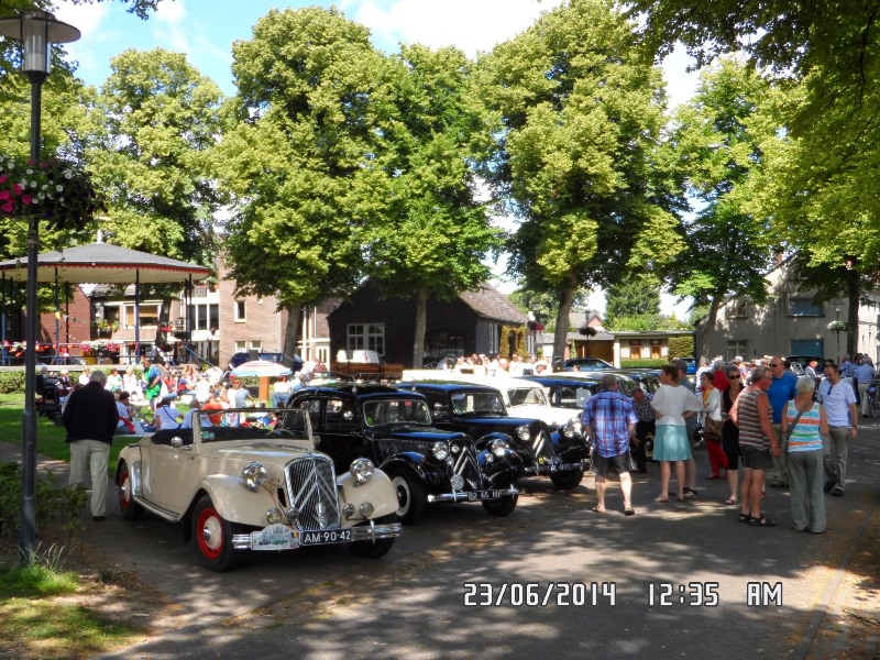 En dan de volgende stralende zondagmorgen van 29 juni, en waar het ook eigenlijk om gaat, de asperge rit. Meer dan 40 tractions en nog veel meer deelnemers verzamelden zich s’ morgens rond 11.00 uur op het zonnige terras van de Brasserie “ in de Witte Dame”. Was het toeval of was het door Hans zo gepland: Op het mooie plein voor het terras traden drie lokale Shanty koren op …Jan Uijlings muzikale hart vulde zich met de herinneringen aan al zijn vroegere Shanty optredens….Wij, maar zeker ook Jan, genoten van de vele schitterend gepoetste Tractions , geparkeerd in het front van de zangroepen in combinatie met de vele zeemans- en piratenliederen.