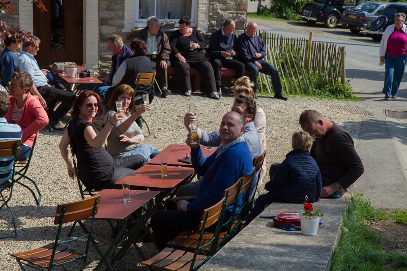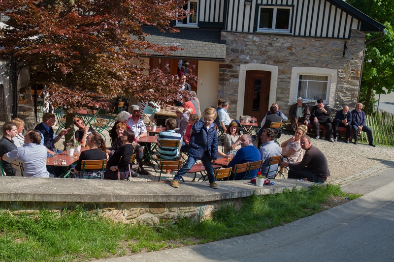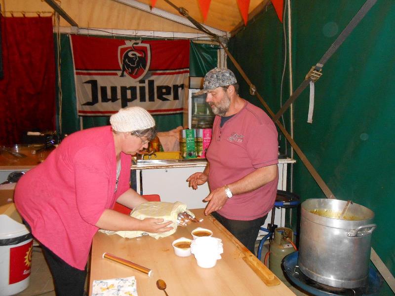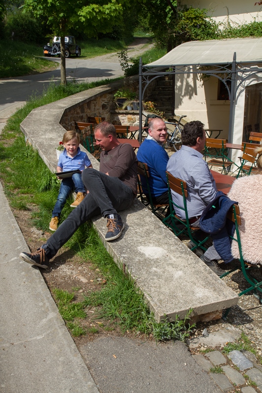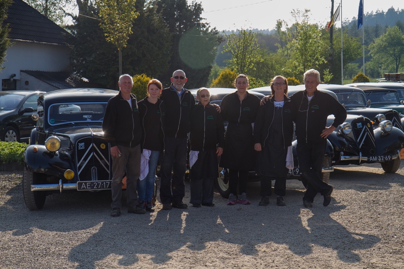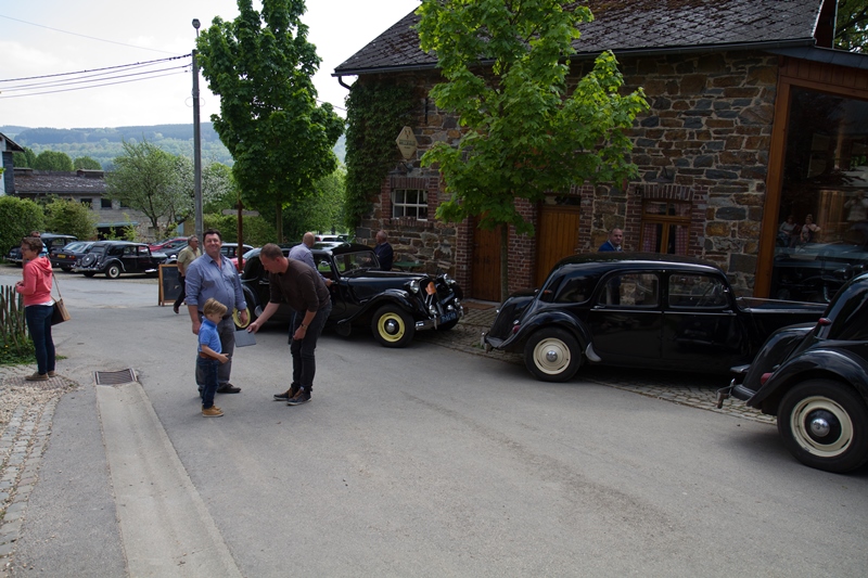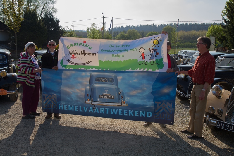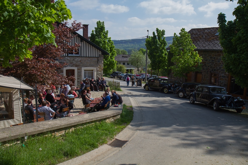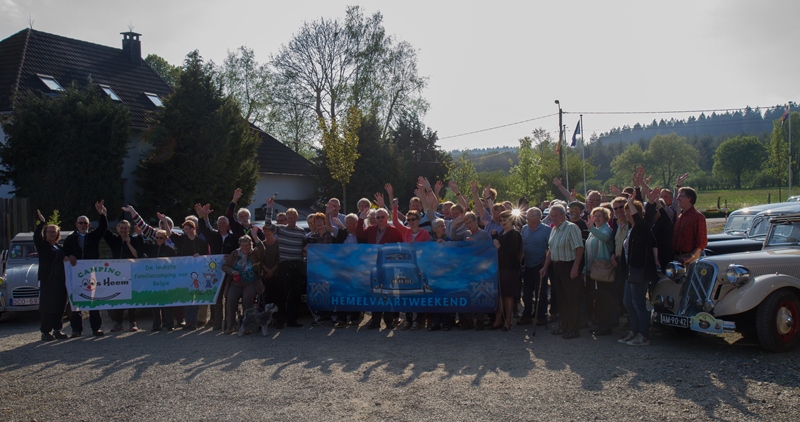 We kregen lekkere maaltijden en ontbijtten in de feesttent. Een programma met ruim de tijd om bij te praten en genoeg mogelijkheden om je te vermaken. Zo ging de rit op vrijdag door een schitterend landschap, met een parcours waar de Traction een beetje op de proef werd gesteld. Een flinke klim, met koffiestop met mooi uitzicht als beloning. Daarna weer slingeren langs mooie bossen en riviertjes naar de lunch in Coo. Als toetje gingen we bierproeven bij een brouwerijtje met zonnig terras in een pittoresk gehuchtje. Op de feestavond liet Ton Helbers zijn talenten als Chippendale zien, we kwamen niet meer bij! Familie Helbers, bedankt voor deze schitterende Hemelvaart.
