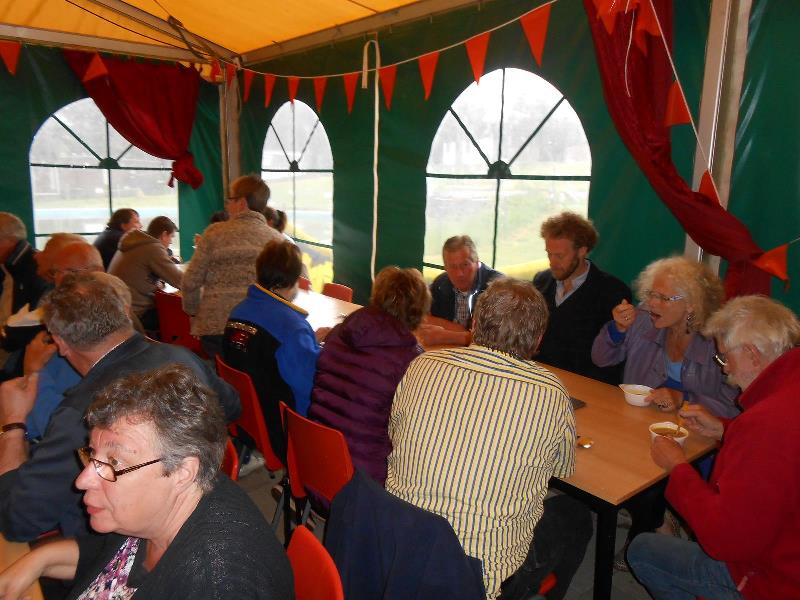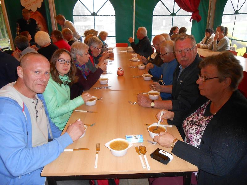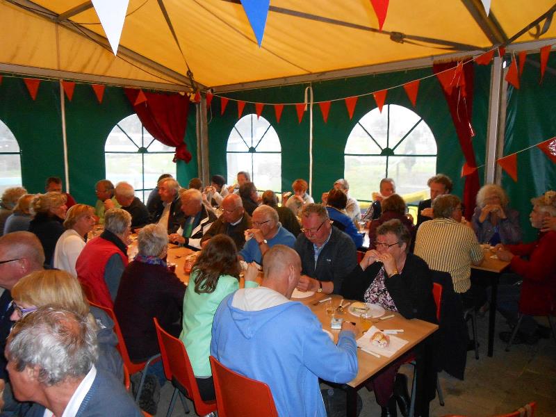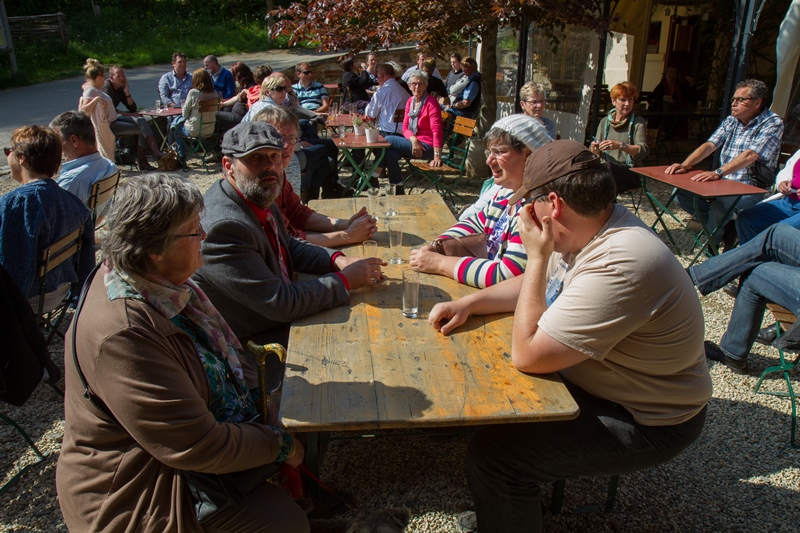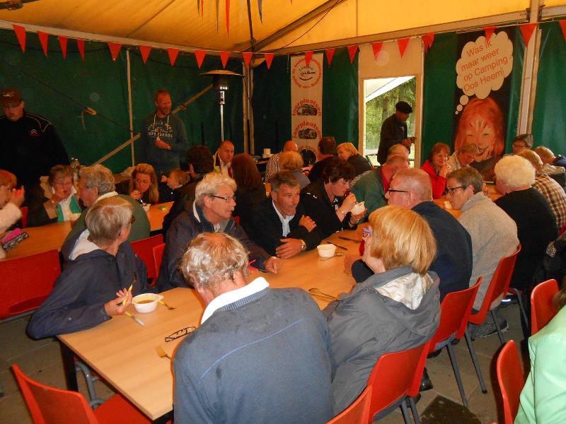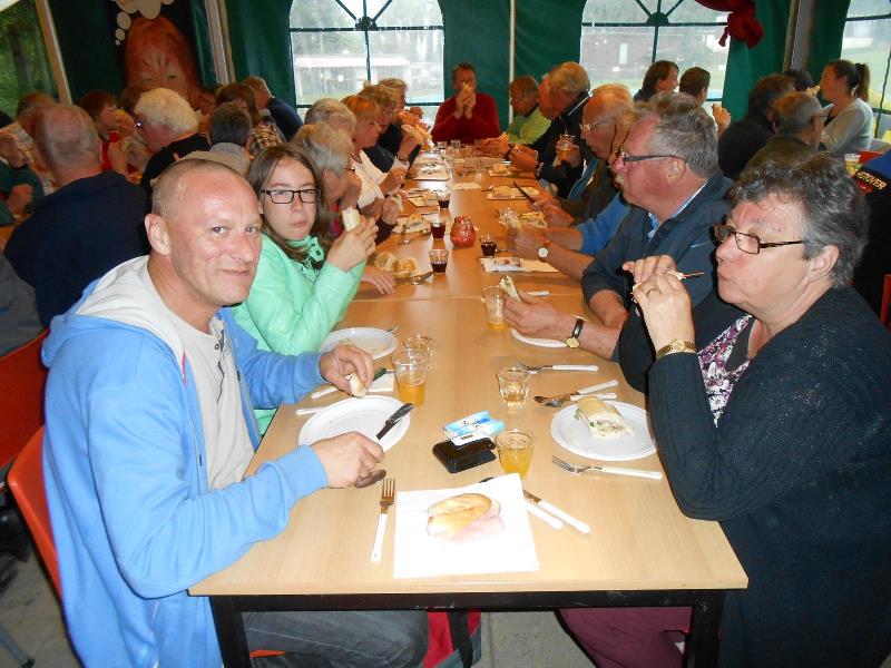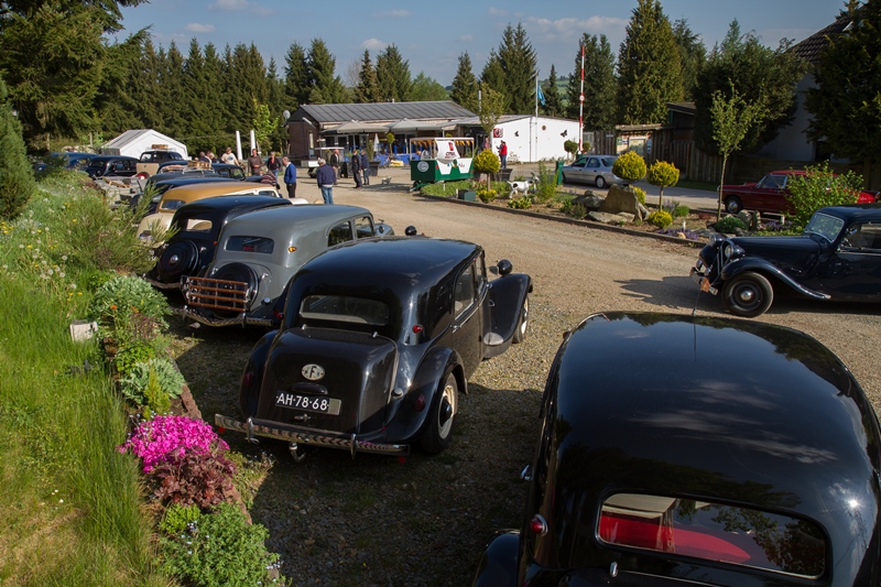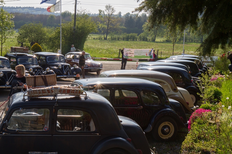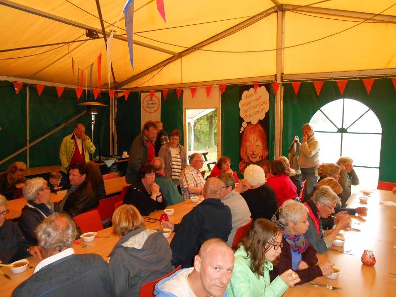 We kregen lekkere maaltijden en ontbijtten in de feesttent. Een programma met ruim de tijd om bij te praten en genoeg mogelijkheden om je te vermaken. Zo ging de rit op vrijdag door een schitterend landschap, met een parcours waar de Traction een beetje op de proef werd gesteld. Een flinke klim, met koffiestop met mooi uitzicht als beloning. Daarna weer slingeren langs mooie bossen en riviertjes naar de lunch in Coo. Als toetje gingen we bierproeven bij een brouwerijtje met zonnig terras in een pittoresk gehuchtje. Op de feestavond liet Ton Helbers zijn talenten als Chippendale zien, we kwamen niet meer bij! Familie Helbers, bedankt voor deze schitterende Hemelvaart.