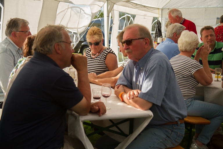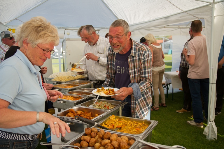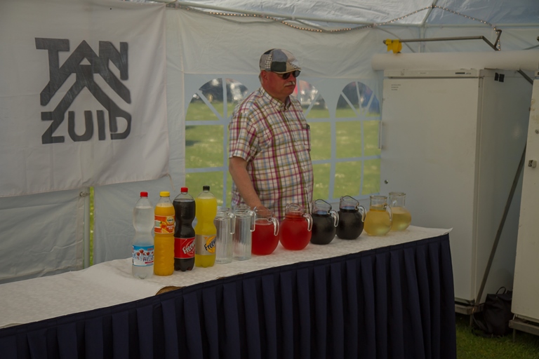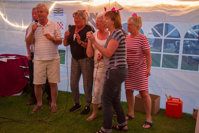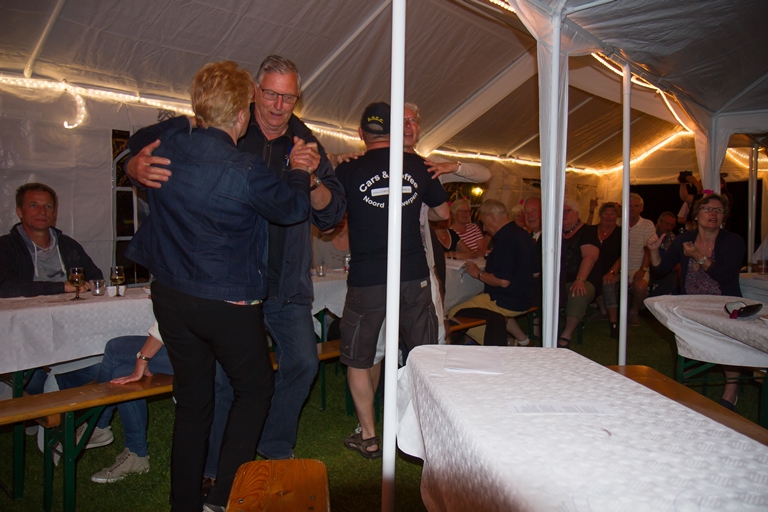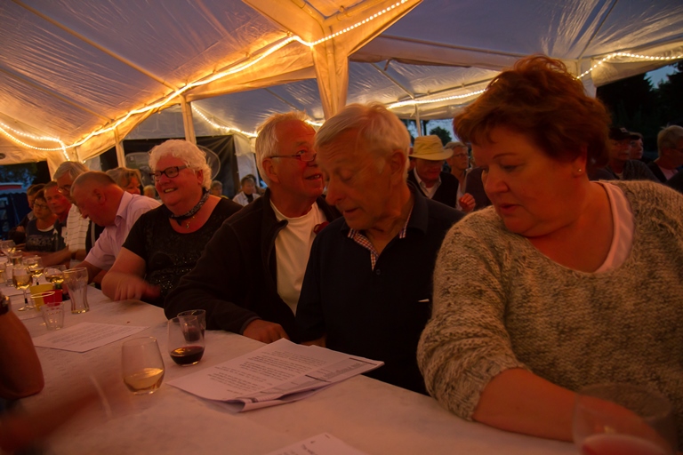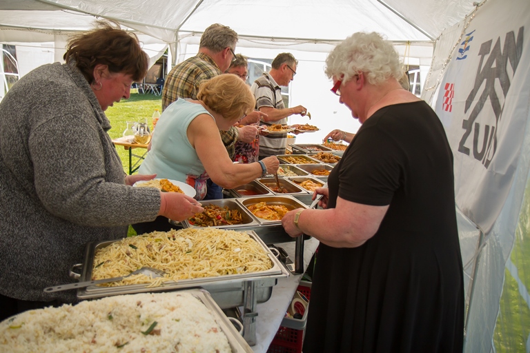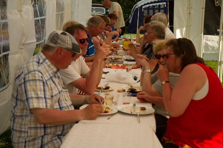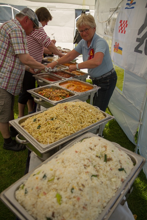 Om 18.00 uur werden we weer verwacht in de tent voor het stamppotbuffet, wat Peen en Uien, Boerenkool en Zuurkool inhield, met worst, speklap en suddervlees. Wederom genoeg en erg lekker zelfs bij 29 graden hitte...