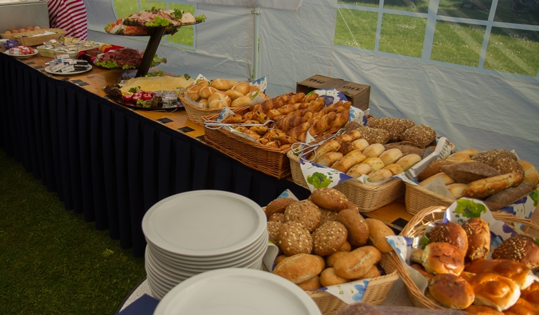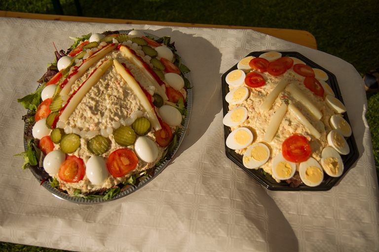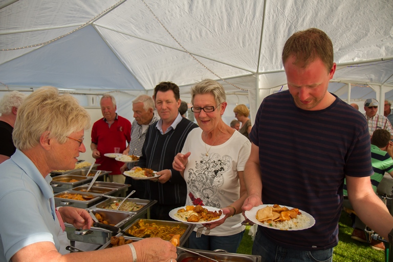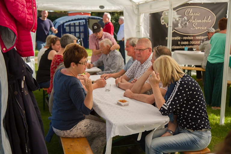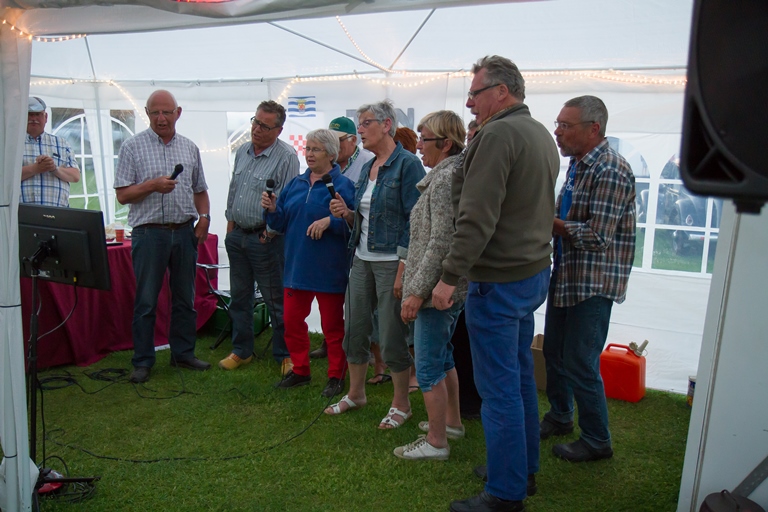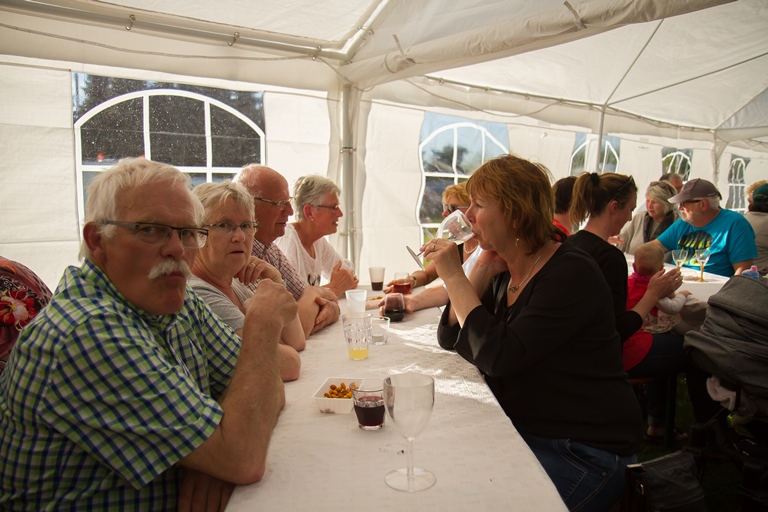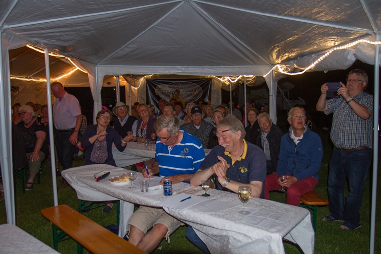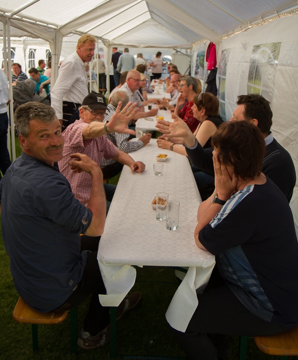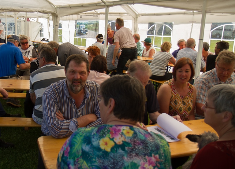 Om 18.00 uur werden we weer verwacht in de tent voor het stamppotbuffet, wat Peen en Uien, Boerenkool en Zuurkool inhield, met worst, speklap en suddervlees. Wederom genoeg en erg lekker zelfs bij 29 graden hitte...