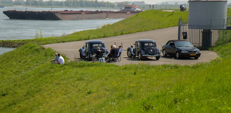 Op vrijdag was het verzamelen bij het Nationaal Bevrijdingsmuseum en werden de Tractions door de organisatie netjes opgesteld, zodat ik mooie foto's kon maken. Ook aan de sponsoren wordt gedacht, deze krijgen een foto vergroot aangeboden. Onze gastheer was Herman Lelieveld van afd. Gelre die een leuke toelichting gaf op de film Market Garden. Bij vertrek vanuit het Bevrijdingsmuseum kregen we een mooie koeltas met lunch erin en de route die we zouden gaan rijden. Deze ging over en door de Ooijpolder. Op de dijk was het een lust om te picknicken, wat menigeen ook heeft gedaan.