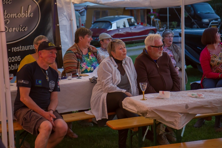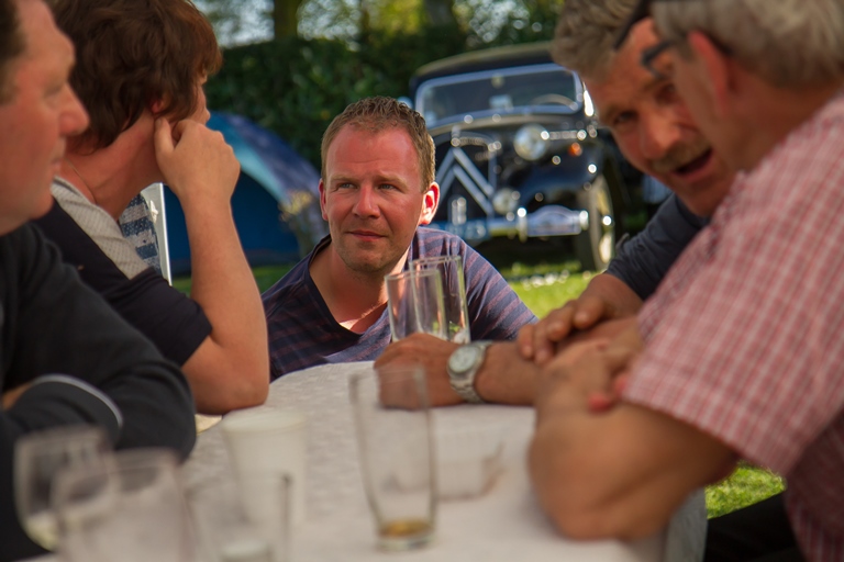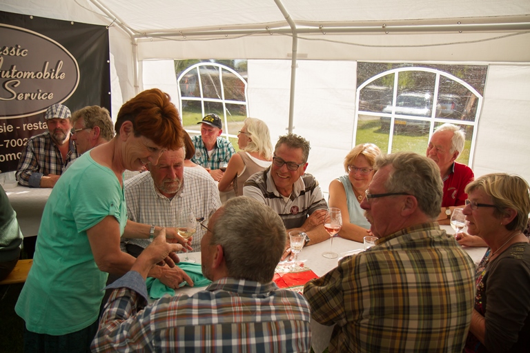 Zaterdag hadden we een vrije dag, wat eenieder zelf in kon vullen. Sommigen gingen nogmaals toeren door het mooie gebied, anderen pakten de fiets en weer andere zijn nog naar Citromobile afgereisd. Het was een warme en mooie dag en 's middags om 17.00 uur zijn we daarom maar begonnen met een drankje en om 18.30 uur waren de BBQ's heet genoeg om al het vlees te roosteren. Ieder voor zich, salades gemaakt door de organisatie en de tafels mooi gedekt, hebben de meeste van ons eerst bij hun eigen tafel met stoeltjes om de tent gegeten.