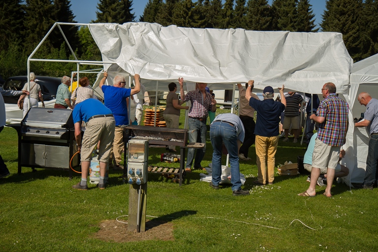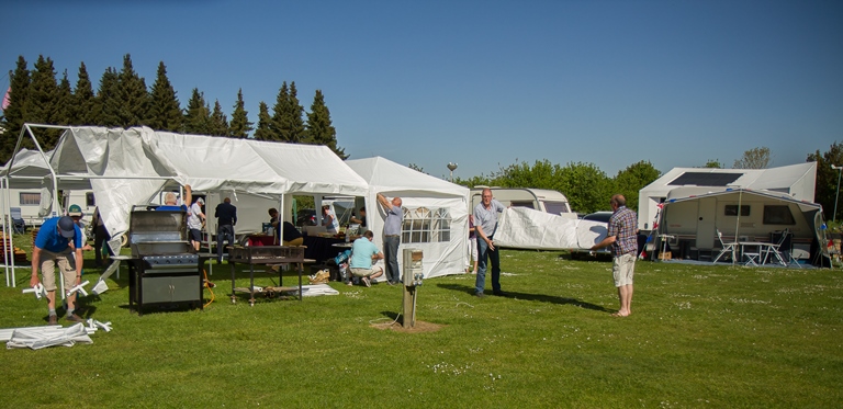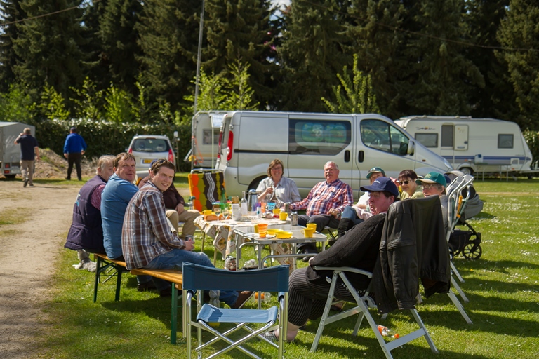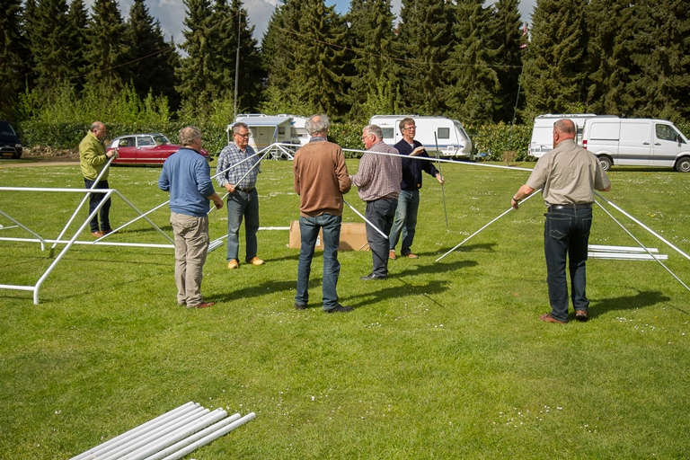 Wij waren er al op zaterdag ervoor en hebben een hele week mogen genieten, waarbij elke dag het weer warmer werd en er steeds meer gezelligheid kwam op de camping. Iedereen druppelde bijna eerder dan de donderdag binnen en hebben we nog gezamenlijk allerlei activiteiten gedaan, voorafgaand aan het weekend. Zoals met tractor en treintjes naar 2 wijnboerderijen, de dodenherdenking op 4 mei en de braderie in Groesbeek op 5 mei.
