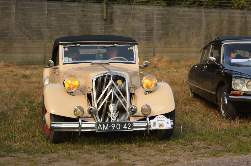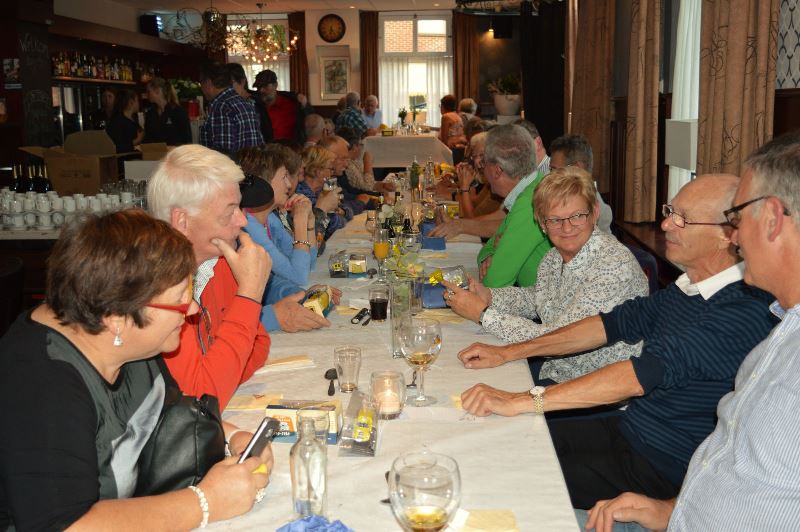 Na een goed ontbijt in de Kiekenhoeve (amai), reden we naar de koffie/vlaai bij een grappig scootermuseumpje in Klein Zundert. We bleven telkens de grens passeren via kleine weggetjes - en toen we bij de borrelstop aankwamen wisten we even niet meer in welk land we waren...oh ja dit lijkt me Nederland. Deze stop was een verrassende locatie - een scouting honk. De padvindersherinneringen en sterke verhalen werden opgehaald, terwijl Wilma Helbers met een spannende loterij onze aandacht wist te behouden. Er werd druk geteld hoevaak een Ollander prijs had, en hoe vaak een Vlaming. Ton Helbers was eerder op de dag al gesignaleerd, verkleed als bedelaar, en nu had hij met Leo alle auto's van een parkeerbon voorzien. En ja hoor, de schrik zat er even goed in. Bij het uitstekende diner op het eindpunt, werd vrolijk getoast met Lutgard en Jan de Bruyckere die de dag ervoor getrouwd waren. Alle deelnemers ontvingen een mooi Citroen miniatuur namens de BOCC alvorens huiswaarts te keren. Ton en Wilma en onze vrienden van de BOCC, bedankt voor deze mooie dag!