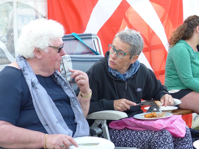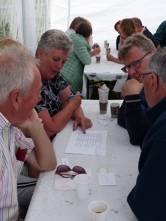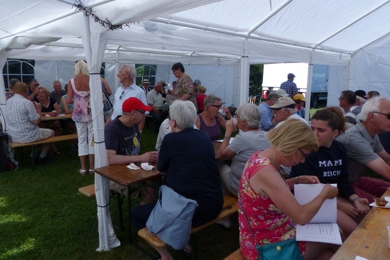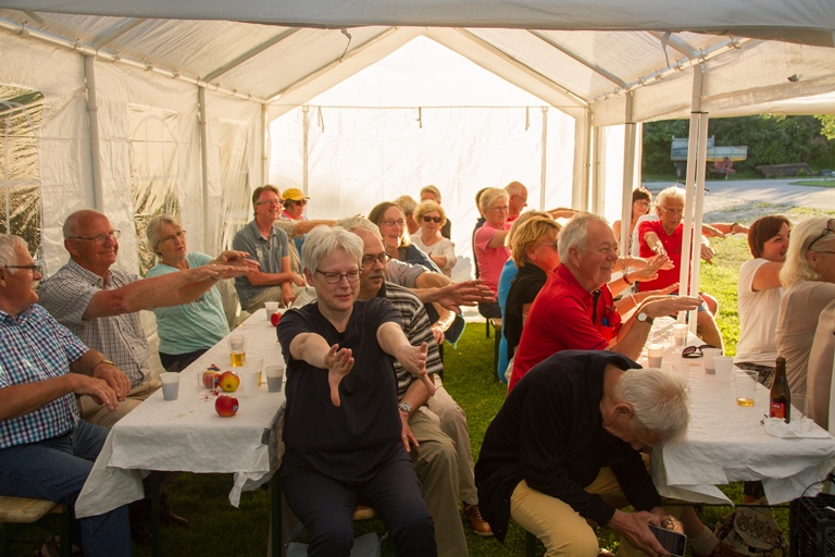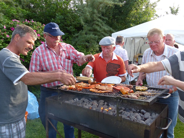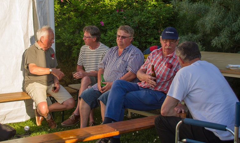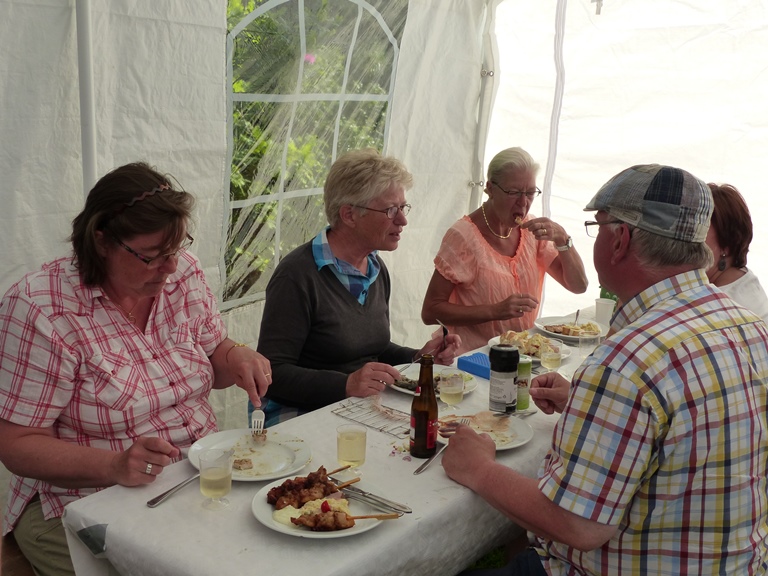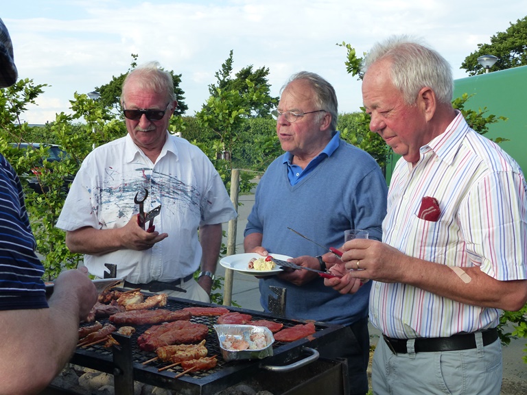 Geen Tan Hemelvaart zonder BBQ….gelouterd met een ruime keus aan accessoires , geregeld door de organisatie, was ook dit jaar de avondmaaltijd een waar culinair feest! Boeiend was zeker ook de verzorgde achtergrond muziek , die soms ook het karakter van voorgrond muziek kreeg. Dat mocht ook wel, gezien de fijngevoelige en meelevende repertoire keuze van een echte DJ….helemaal gericht op leeftijd en taalgevoeligheid van de toehoorders……!