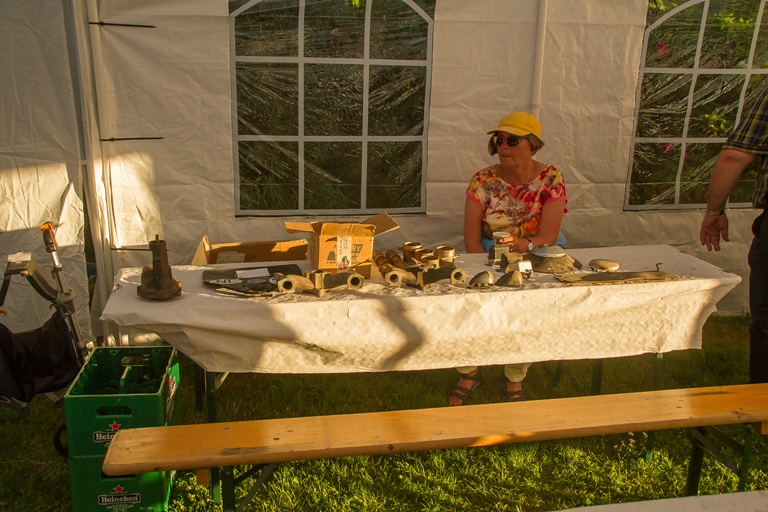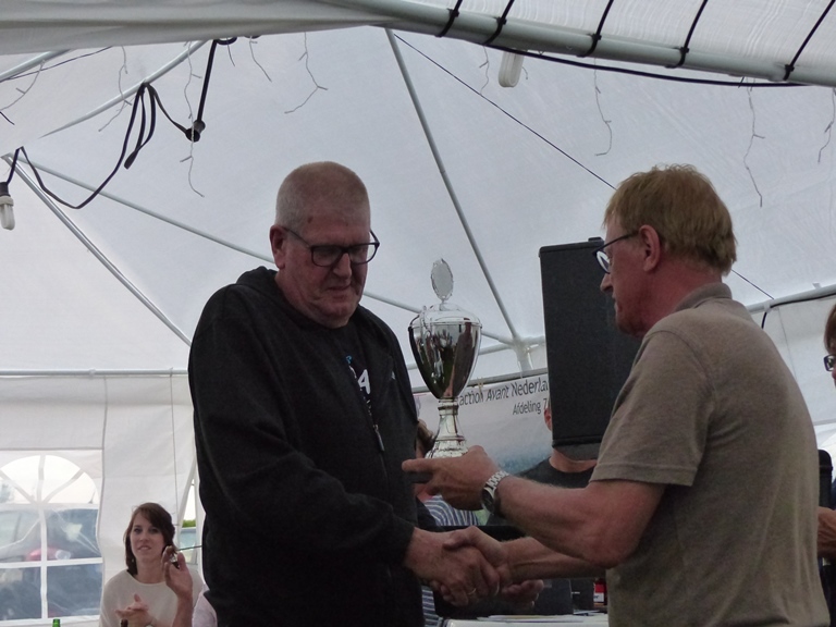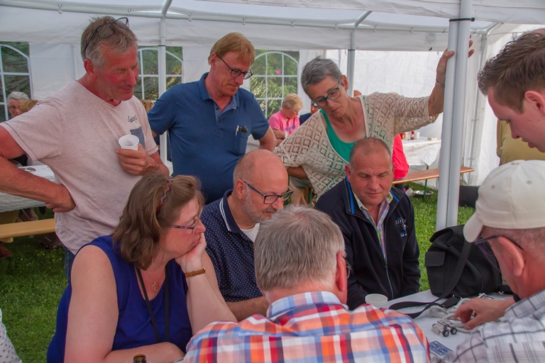Een fantastisch samenspel tussen de deskundige veilingmeester en de bevallige presentator ( Johan Looff) van het te veilen object resulteerde in een ongekend hoge opbrengst. De aller mooiste strijd ging om kavel 3. Een “Lock apparaat”, ingebracht door Helma de Bruin. Drie naaigrage dames boden keer op keer om het object te verkrijgen….Met dit enthousiasme steeg de prijs pijlsnel per seconde . Onbaatzuchtig als Helma is, had zij voor zich zelf de verkoopprijs gesteld op NUL euro ! Niet verwonderlijk dat met zo’n verkoopprijs en drie biedende dames de netto opbrengst het allerhoogste was van alle geveilde objecten. Het levert Helma samen met Huib eeuwige roem op: Vermelding van hun namen op de TAN ZUID wisselbeker met de grote oren. Niet onvermeld mag zijn de inbreng van onze BOCC gast , Marc van Zundert. Zijn kavel , bestaande uit schitterende Traction miniaturen in nog de originele doos, vonden gretig aftrek , vooral door Leo Helbers, en voor mooie prijzen en een belangrijke bijdrage voor de TAN Zuid kas. Dankzij de combinatie van een zeer accurate veilingmeester en een bevallige presentator ( die niet schroomde om op slimme wijze mee te bieden met als enig doel de prijs van het geveilde nog hoger te krijgen!) was de totale veiling omzet meer dan Euro 1000,- en bleef, na aftrek van de inbrengprijs, een netto voordeel over voor TAN Zuid van meer dan Euro 600,- . Een unieke en fantastische avond die gedisciplineerd eindigde om ca 23.00 uur.