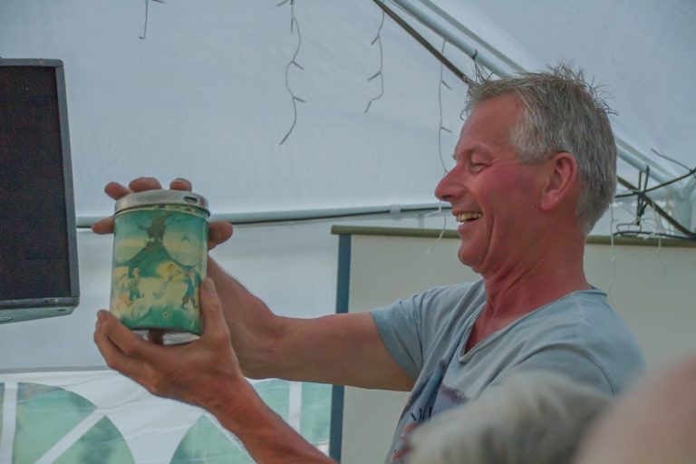 Daarna mocht , onder leiding van de voltallige commissie, een klein select gezelschap, de grote tent inclusief inhoud afbreken. Op deze manier konden we als groepje nog even wat langer genieten van dit bijzondere evenement in Serooskerke!