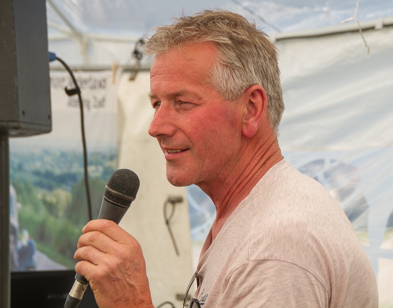 Het was meer dan terecht dat Paul Officier in mooie bewoordingen de organisatie bedankte voor dit originele en onuitwisbare Hemelvaartevenement 2017. Naast Paul mocht mede bestuurslid John Branderhorst schitterende bossen TAN ZUID bloemen uitreiken aan de dames van de organisatie.