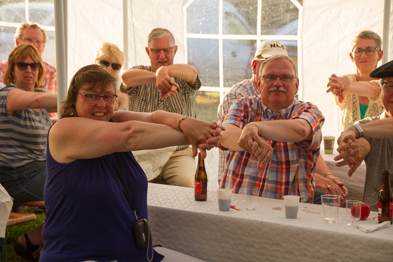 NB Tot ieders grote verbazing (en opluchting) vermelde Paul Officier wie volgend jaar de verantwoordelijkheid op zich neemt om het Hemelvaartweekend 2018 te organiseren. Initiatiefneemster Marieke Officier neemt met haar mee haar echtgenoot Paul , versterkt door Gertie en Chris Hahn en Ingrid en Arie van Aken…hulde voor hun bereidwilligheid! We gaan in 2018 naar Friesland en de inschrijving kan elk moment starten…haast u , na het succes van dit jaar en lees daarom dagelijks de website van TAN Zuid : www.tanzuid.nl