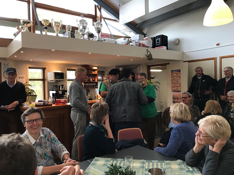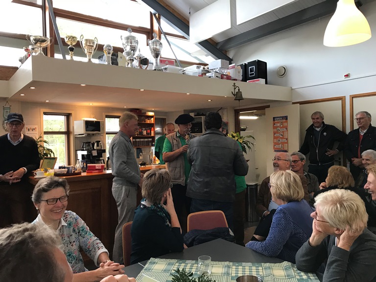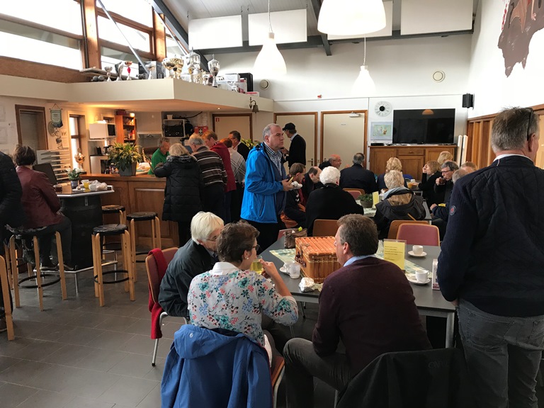 Tot slot werd er voor zo’n 30 belangstellenden een maaltijd geserveerd, die helaas kwalitatief geen recht deed aan het niveau van de dag. Het reeds aangekondigde voorgerecht werd uiteindelijk toch niet opgediend. Ook werd duidelijk dat de warmhoudapparatuur van zowel het eten als de borden in de keuken niet naar behoren functioneerde. Maar daar kon de organisatie net zoals op het weer verder geen invloed op uitoefenen.