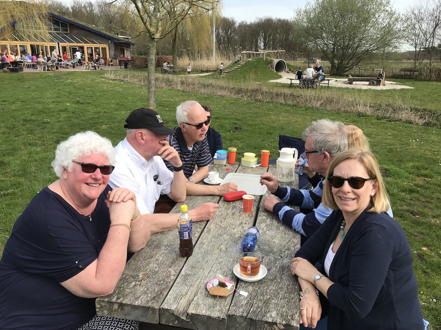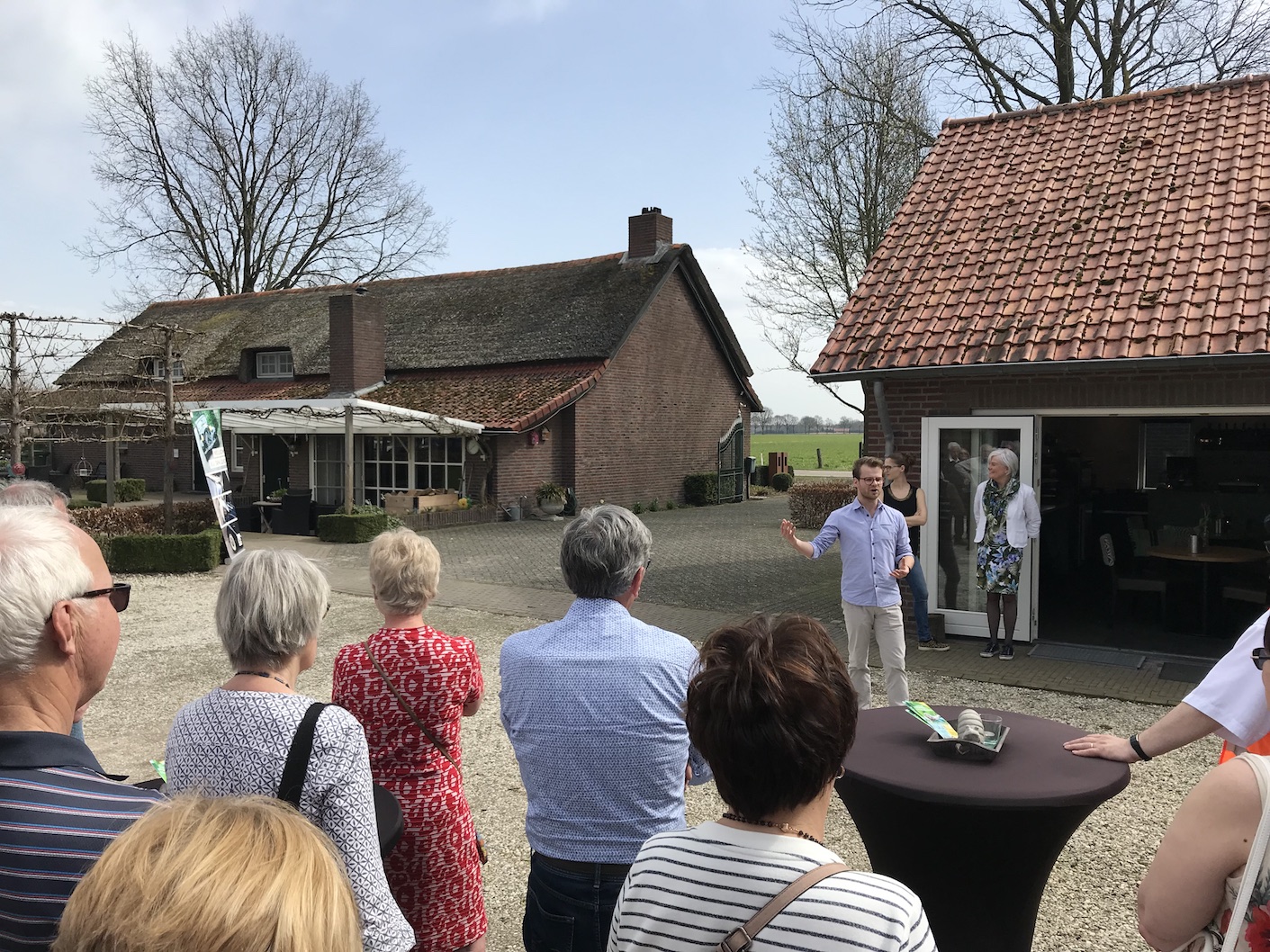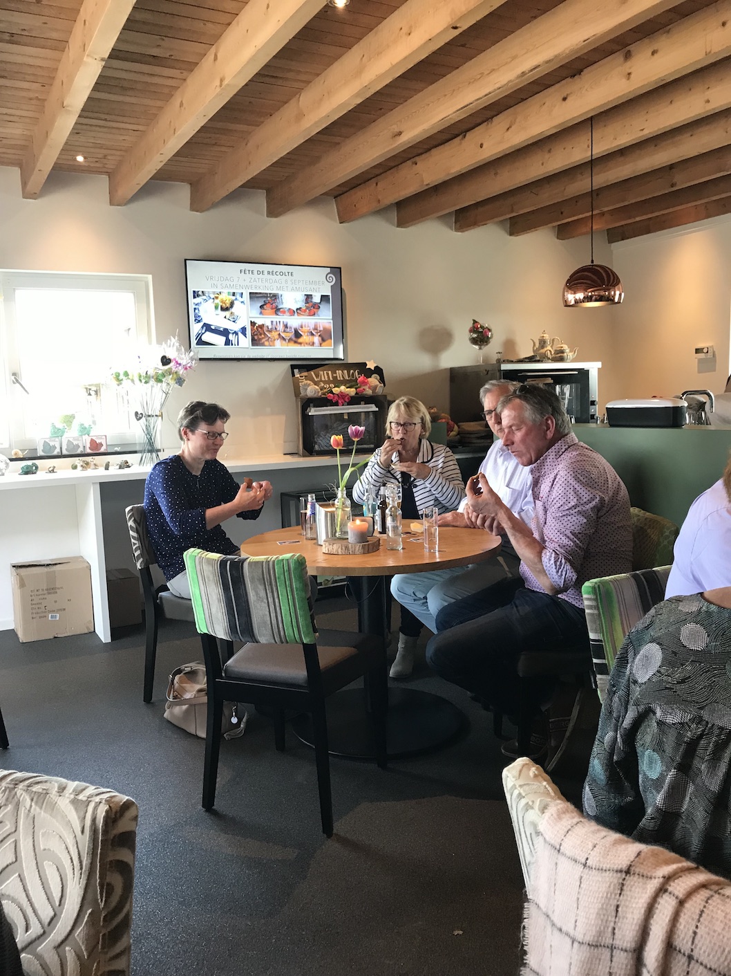 Al snel kwam de aap uit de mouw en de slak uit zijn huisje. Rolf van der Zande heette ons allen van harte welkom en kondigde vrolijk aan dat we een bezoek gingen brengen aan een slakkenkwekerij - inclusief jawel een proeverij..… De organisatoren hadden dat bewust geheim gehouden, om ons te verrassen. In ieder geval was de ontvangst met koffie prima. De heerlijke vlaai legde al een goede bodem voor de kruipertjes die we die middag naar binnen zouden laten glijden.