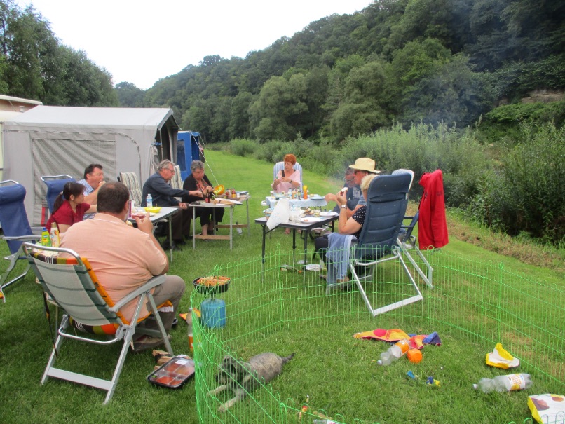 Wat we uiteraard niet mochten missen was een bezoekje aan Trier, een mooie interessante stad om met onze - door de Duitsers genoemd “boevenwagens” - te doorkruisen en te bezoeken. We namen een bustocht door de stad en brachten een bezoek aan het speelgoedmuseum, waarbij ook terrasbezoek niet mocht ontbreken. En natuurlijk ook het heerlijke eten was een feest tijdens deze periode, met restaurantjes te over, eigenlijk te veel om op te noemen. Toch rest mij om als leuke anekdote nog even te vermelden dat door H.M. en T.H. en F.K. met groot enthousiasme aan een sloopcaravan wat onderdelen werden onttrokken. Met als uitstekend resultaat een koeling en zonwering.
