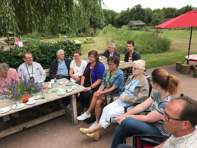 De tocht ging over smalle wegen en buurtschappen richting De Peel. Er was een stop gepland bij het Buitencentrum “De Pelen” te Ospel. Hier was er voor iedereen koffie of thee en Limburgse vlaai. Ook konden de mensen een drankje bestellen. Veel goede herinneringen over deze mooie streek werden opgehaald.