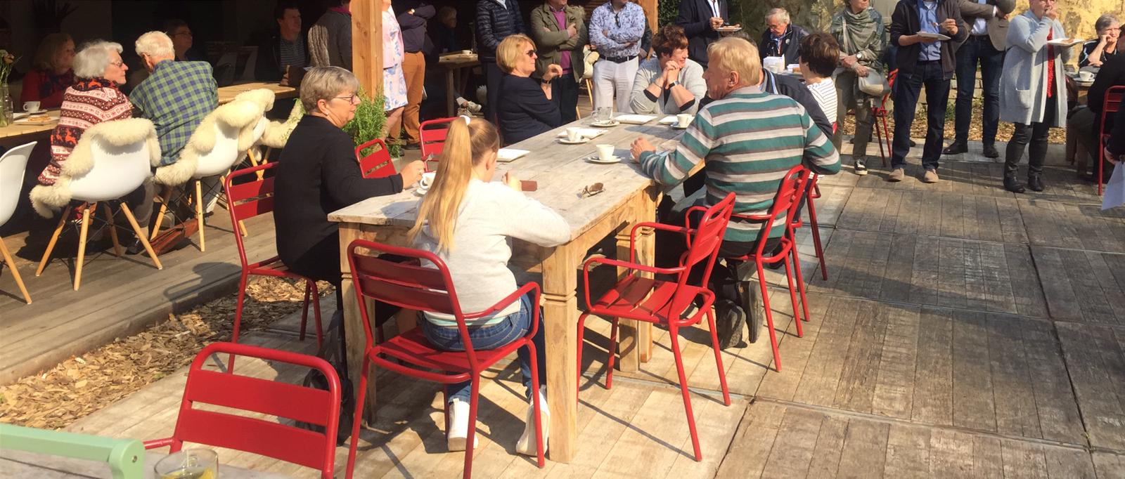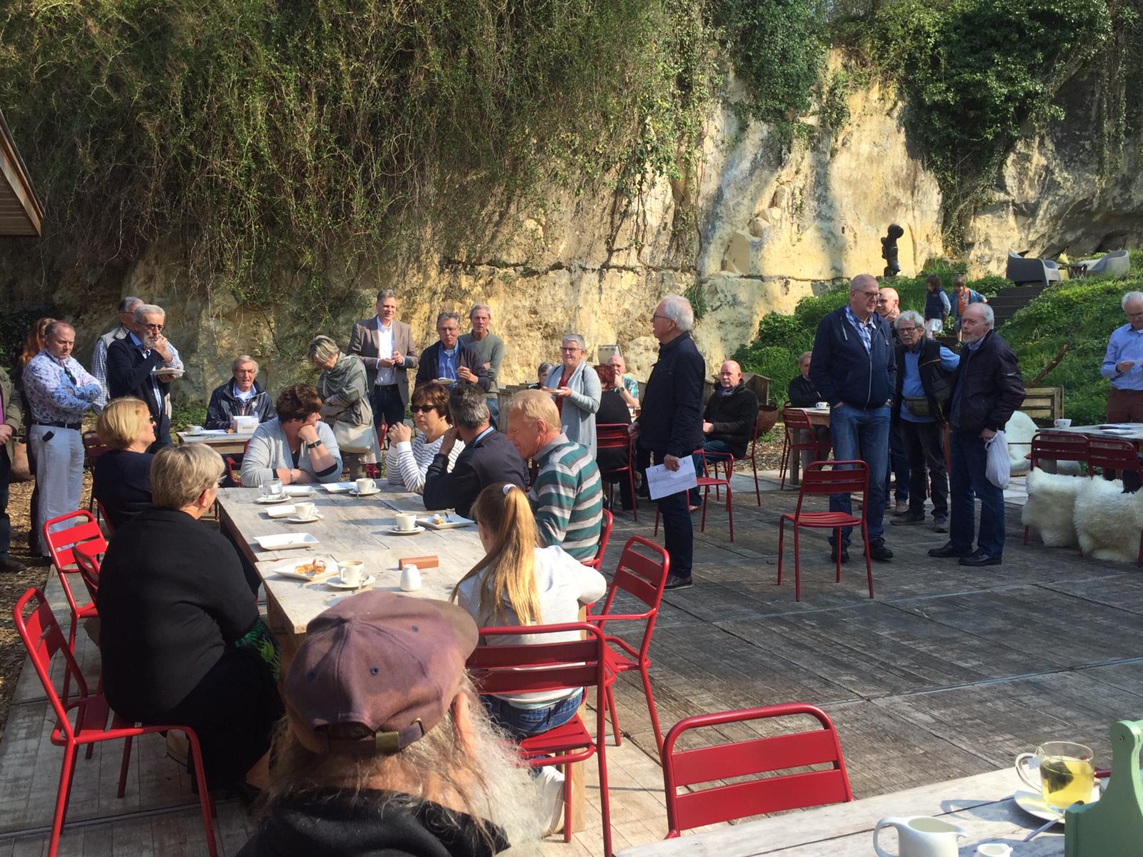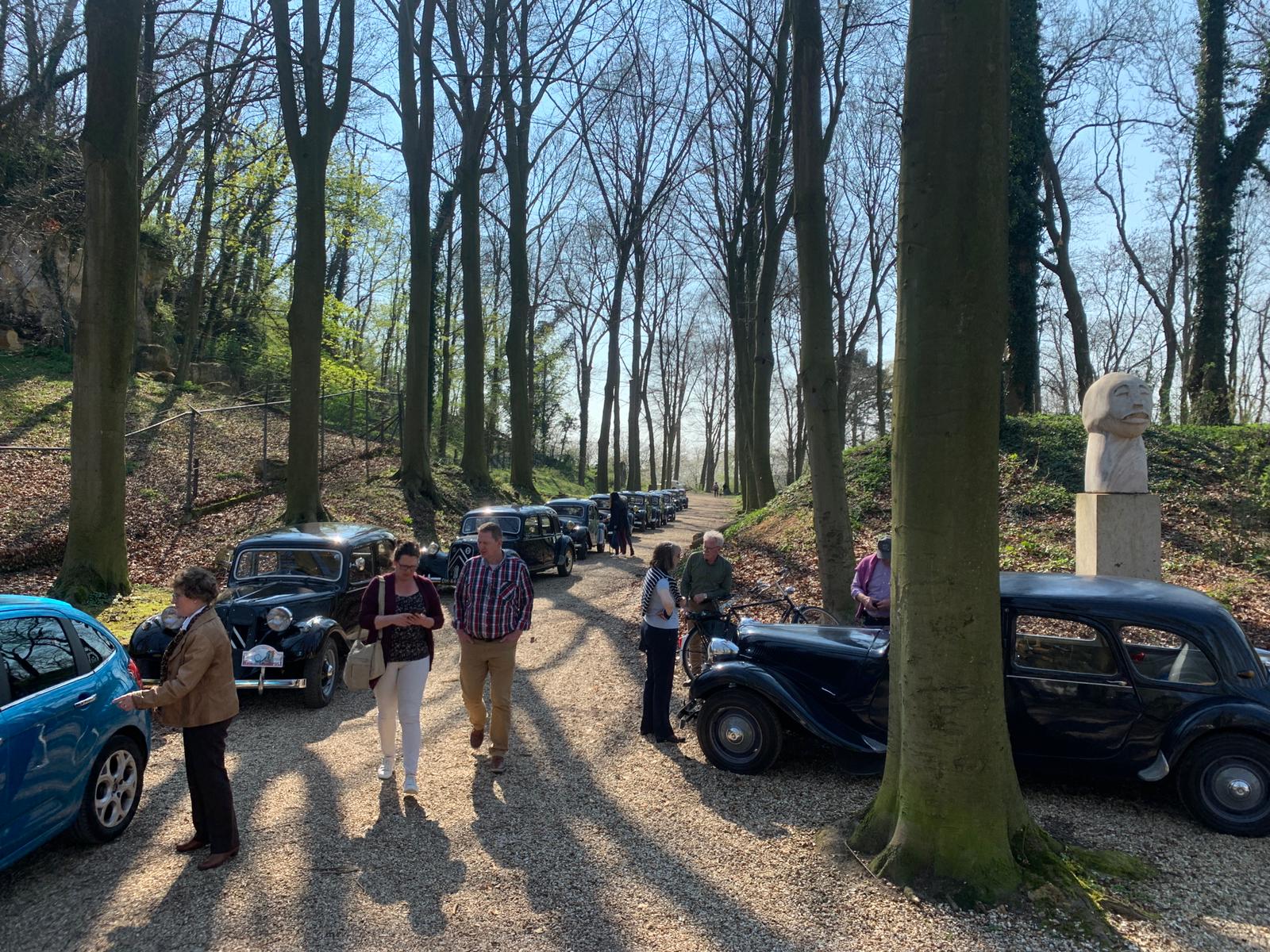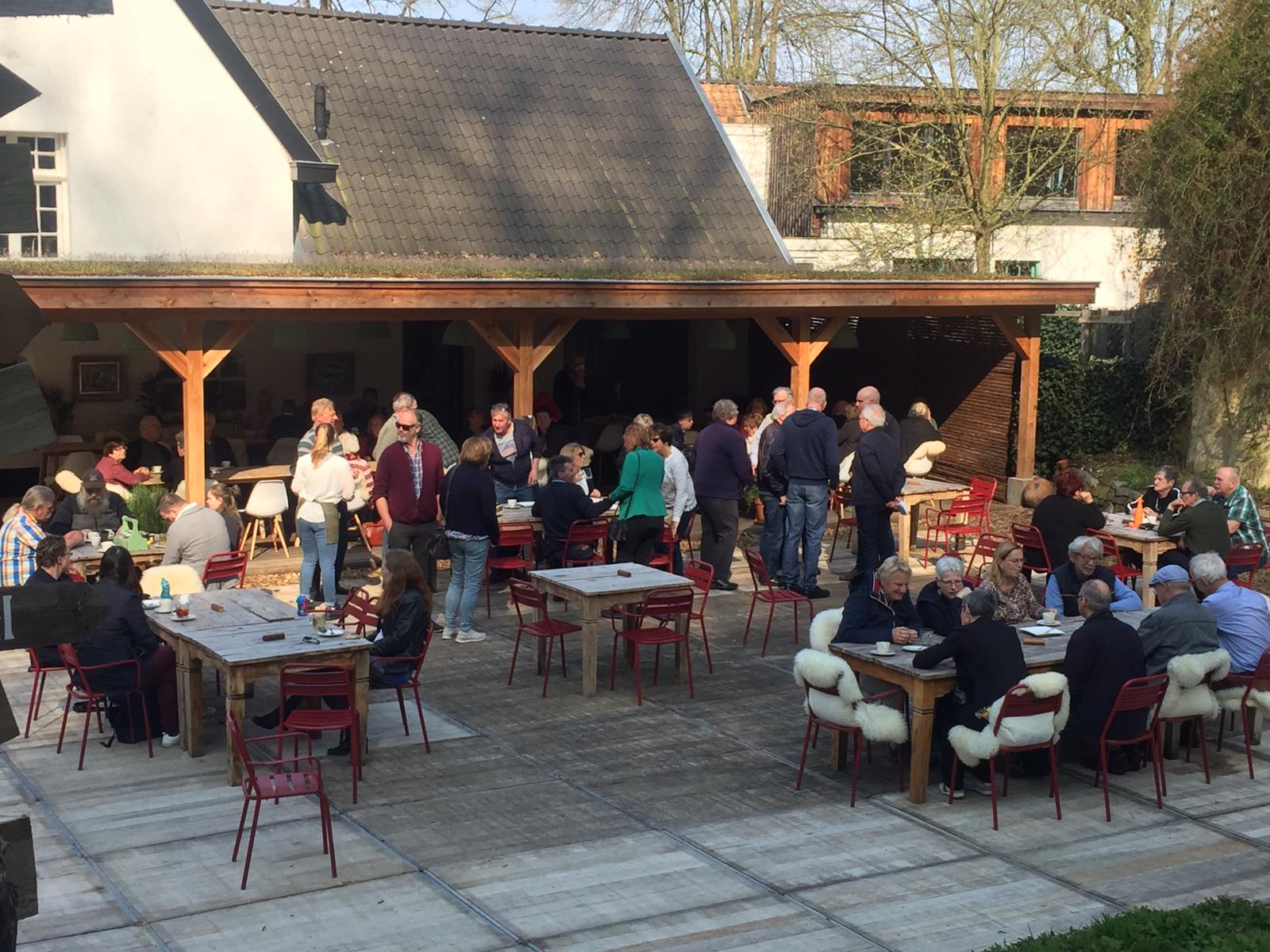 Wat zal de dag gaan brengen. De weersvooruitzichten voor deze dag waren al langer perfect. Dan wil je wel met de “oude dame” toch zeker op pad. Maar dit had niemand kunnen bedenken. Het voorjaar, zeg maar de volle zomer, begin april. We werden door Etienne Ubaghs ontvangen op Landgoed Heerdeberg in Cadier en Keer. Voorin een marktje met streekproducten en delicatessen. Tot oerbrood en schapenvachten toe. Een terras vol met tafels en banken, alles was buiten gedrapeerd. En natuurlijk meteen aan de koffie en Limburgse vlaai. Het woord vlaai al. Heerlijk !