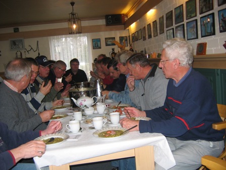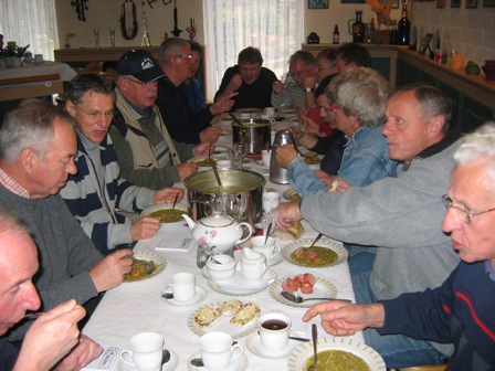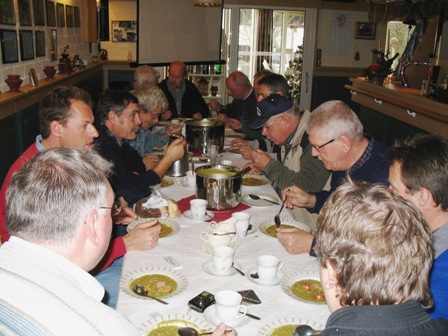 Frans en Ria tracteerden ons ondertussen op een heerlijke erwtensoep en een pilsje uit eigen tap! Ook liet hij ons niet gaan zonder een 'kerstkado' waarmee we de auto's weer goed kunnen doorsmeren. Het was weer uitstekend verzorgd en een leerzame dag.