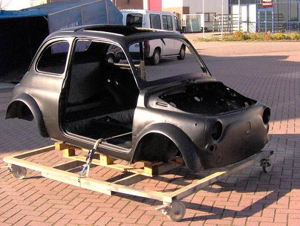Het meest economisch is om een stel plaatdelen tegelijk te laten behandelen. Zeker bij het KTL'en is het voordeliger om een kooi vol te hangen met deuren en motorkap, achterklep. Ook de hele koets kan in het bad worden behandeld.