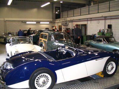 's Middags gingen we naar Grubbenvorst, om daar bij de gebroeders Niessen te kijken naar al het moois dat zij restaureren. We werden hartelijk ontvangen en kregen een rondleiding door het hele bedrijf. Hier worden nog op ambachtelijke wijze oldtimers gerestaureerd. Spatborden van een Aston Martin bijvoorbeeld die worden geklopt uit aluminium met houten hamer op een zandzak. Topstuk dat we konden bezichtigen was een Talbot-Lago T120 uit 1939. Een auto waar maar enkele exemplaren van zijn gemaakt en die helemaal is gestript en weer opgebouwd wordt. Een waar kunstwerkje, waarbij het houtwerk van het frame van de carrosserie nog de meeste hoofdbrekens kostte. Als het meezit gaat deze auto in de zomer van 2008 een mooie prijs winnen op het concours van Pebble Beach in de Verenigde Staten. Aardig detail was ook de versnellingsbak die met pre-select werkt. Je schakelt vast naar de volgende versnelling en via het bedienen de koppeling schakelt de auto pas op of terug.