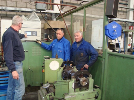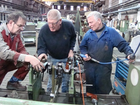 Ondertussen werd door Huib, onder toezicht van Pim en Henk de krukas van Henk uitgebalanceerd….goed gereedschap is het halve werk; moet je nog wel weten hoe dat goede gereedschap werkt!