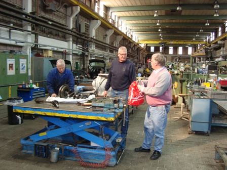 De lunch was natuurlijk een aangename onderbreking, niet alleen omdat Jan had gezorgd voor een groot aantal appelflappen, Zeeuwse gastvrijheid (!), maar ook omdat, onder dankzegging met een flesje wijn, Huib werd toegewenst tot zijn (67- jarig) pensioen bij zijn Thermphoss te blijven werken. Het geeft ons daardoor de mogelijkheid nog jarenlang onze roestige onderdelen weer helemaal te kunnen schoonmaken!