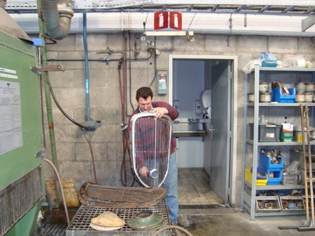 In de achterbak van onze auto’s een diversiteit aan verroeste/vervuilde onderdelen, van melkbus (voorloper van de Traction benzine tank), via velgen, grilles, voorbrug tot een 6 cilinderspruitstuk met daartussen nog heel veel andere onderdelen die een spannende foto puzzel reportage zouden kunnen opleveren. Huib zorgde dat alle machines, droog en natte spuitcabines, op volle kracht werkten waarna wij met volle overtuiging aan de afwas konden!